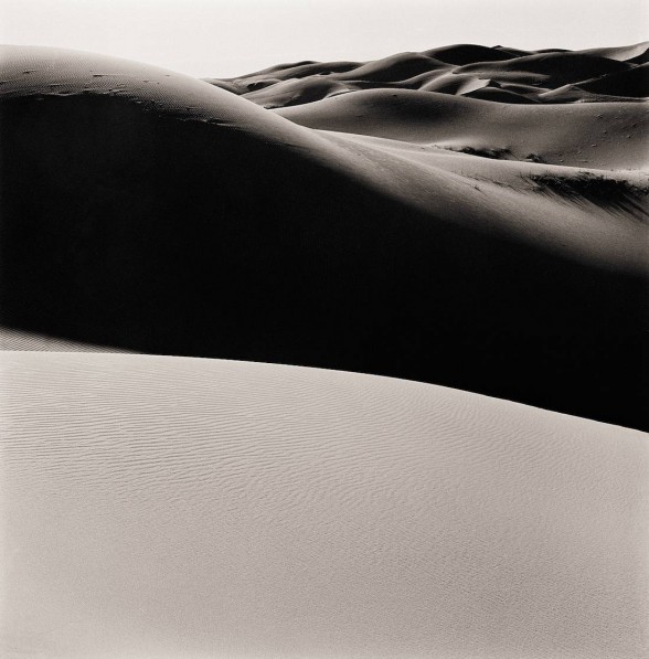 Accomplished Bucks County photographer and teacher, Richard Boutwell, apprenticed with the remarkable Philadelphia photographers Michael A. Smith and Paula Chamlee. The series he has selected for this exhibition are landscapes from the American West and titled Go West – Looking Back, Looking In. What they really are, however, as Boutwell explains, are meditations upon the search for what Edward Weston termed “universal rhythms.” Reproduced below is one of his carbon digital prints of the Algodones Dunes in Southern California. The shifting shapes and shadows of the dunes of course are archetypal, and reminiscent of our own forms. Boutwell not only records their majesty and grace, he entices us to fathom both their enormity and fleetingness, and through them our own place in the universe.