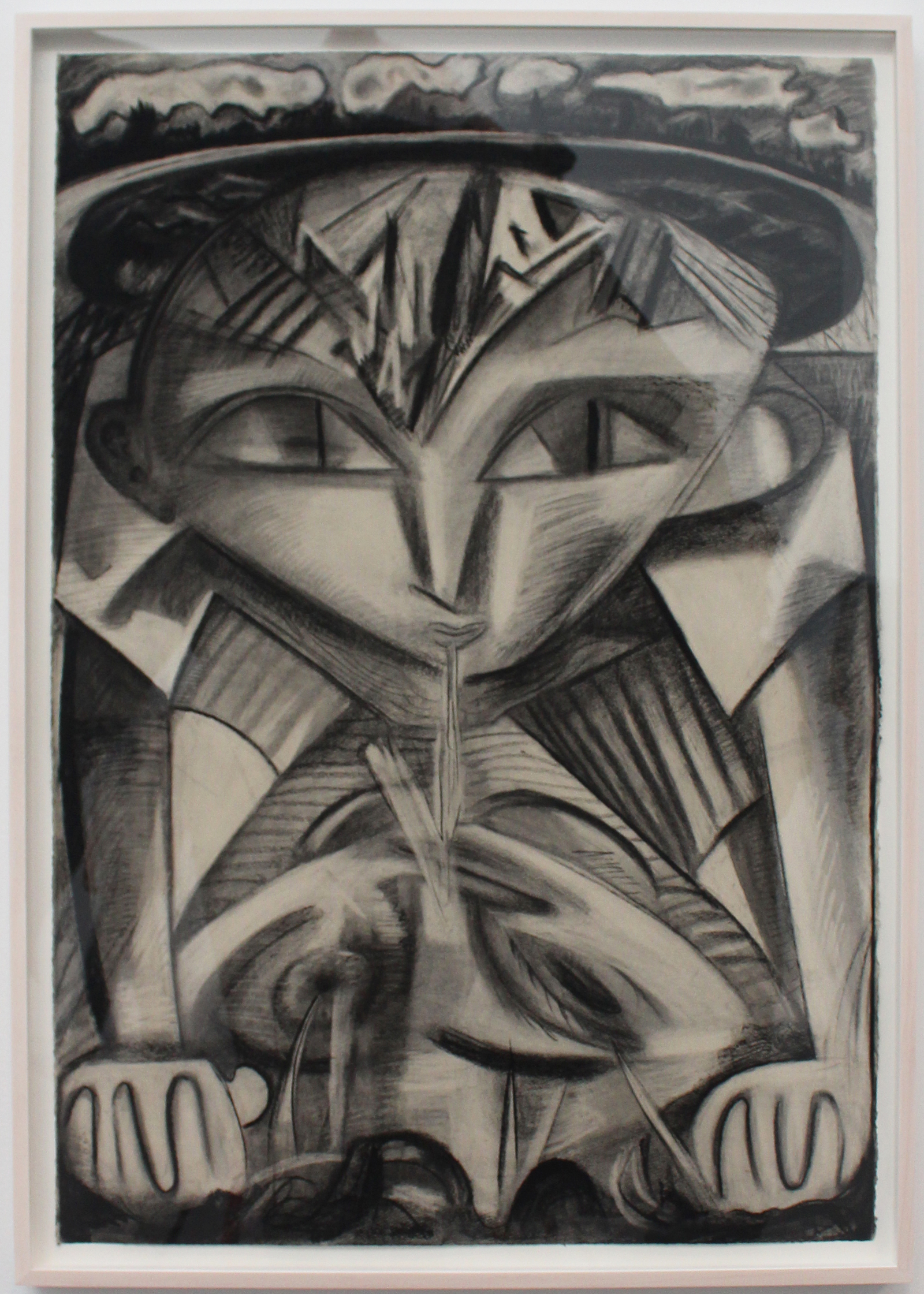 “Spit” is one of the smaller, and perhaps minor, pieces in this solo exhibition of 29 of Schutz’s works. But for me, this charcoal drawing was one of the most striking pieces in the exhibition, and it is, I think, emblematic in many ways of all the work presented.