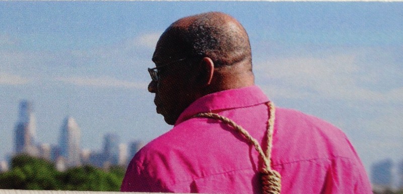 Sherman Fleming’s art is personal, performative and quietly confrontational. Amazing, actually. Recently, Fleming said, he did a public art piece in Brooklyn that riffed on those offensive yard jockeys. He hired a horse and stood with it and invited people to have their picture taken on the horse. His new project is called “Noose,” in which the artist wears a noose and interacts with the public. Here’s a video from his website of a trip he took through the Philadelphia Museum of Art.