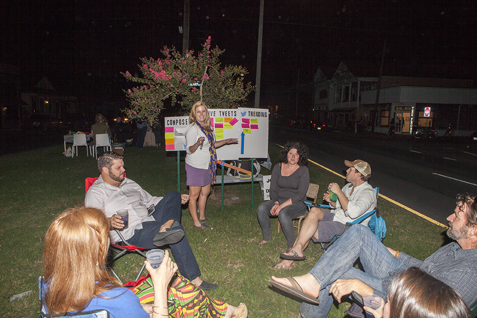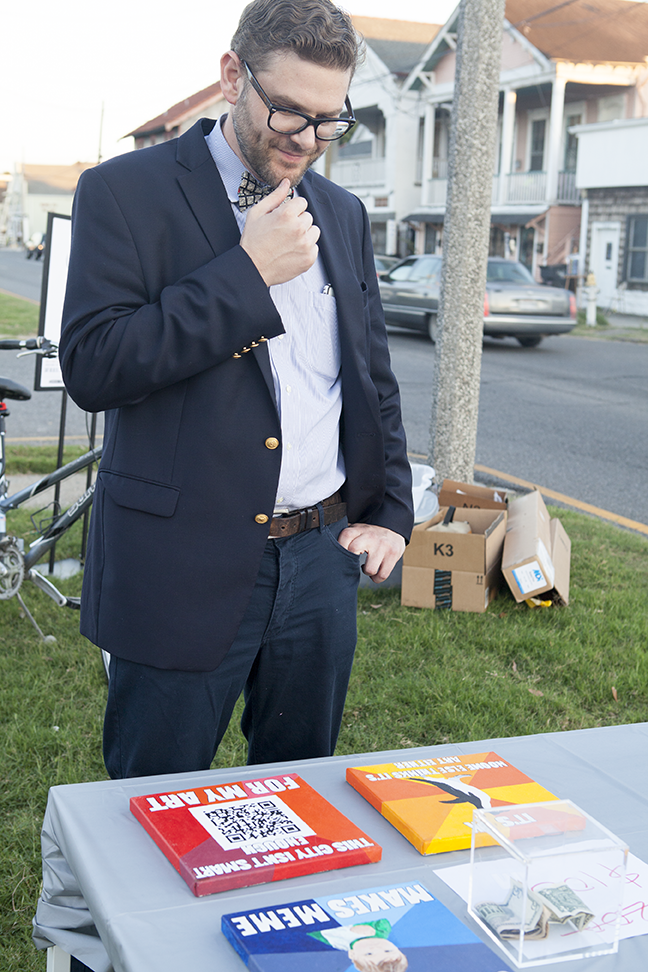 The New Orleans Micro-Ichi was based on the “Yami-Ichi” market originally envisioned and executed by Japanese collective IDPW. On a breezy Saturday, the participating artists set up shop in the middle of St. Claude Avenue in the Bywater (an area largely referred to as “up-and-coming” by local gentrifiers). By choosing this area, the organizers hoped to attract New Orleans Tech Week participants to Second Saturday art openings on St. Claude. The phrase “Yami-Ichi” literally translates to “Internet black market”.