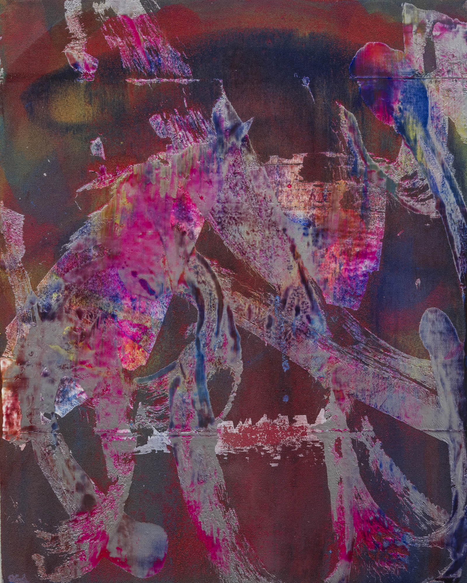 Also imbued with a sense of color fluidity, the Rainbows and Butterflies series is a group of compositionally symmetrical, Rorschach-like works on canvas with vivid, Day-Glo colors. While some of the works create a pulsating, almost synesthetic experience, “Rainbows and Butterflies 6” differs: its juxtaposition of organic brushstrokes and metallic pigments elicits an otherworldliness of chaotic order, like the psychedelic scenes from Stanley Kubrick’s “2001: A Space Odyssey”.