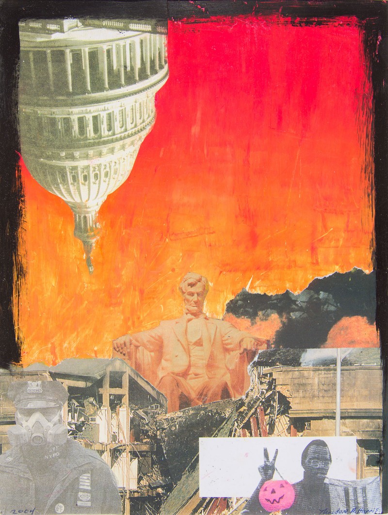 Since the mid-1980s, Philadelphia artist Theodore A. Harris has been joining together a bricolage of visual imagery—advertisements, book covers, military propaganda, architectural pictures—into works of art that heighten our awareness of disjointed logic, racist and oppressive laws, or the hidden costs of blind nationalism.