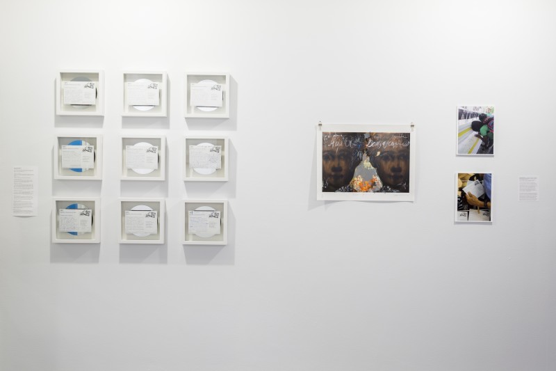 On the other side of the gallery, García’s “Memoria del Perejil” project makes this violence even more explicit. The project commemorates the 1937 Perejil massacre, in which troops led by Dominican dictator Rafael Trujillo killed between 12,000 and 20,000 Haitians. García designed a postcard with the images of two identical black angels, Haiti and the Dominican Republic. On the reverse, she asked respondents to tell her what they had been told about the massacre. While some wrote that the massacre was a justified cull of undesirable foreigners, others decried the violence and underscored the racist component of Trujillo’s anti-Haitian policies. Gazing at the angelic black faces on García’s postcard, one comment stands out: “God made us according to his image and likeness.” In the context of ongoing racial violence, this is no mere cliché or commonplace statement.