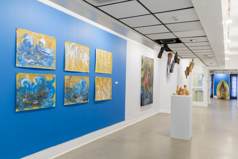 In the second half of the exhibition, “Myth in the Making,” both artists attempt to figure a way forward from this dark and painful past. Both Báez and García are currently based in New York City, and their reflections on the island of their birth are shaped by that geographic distance. Water features prominently in their work, the ocean that surrounds their island but also which separates them from it.