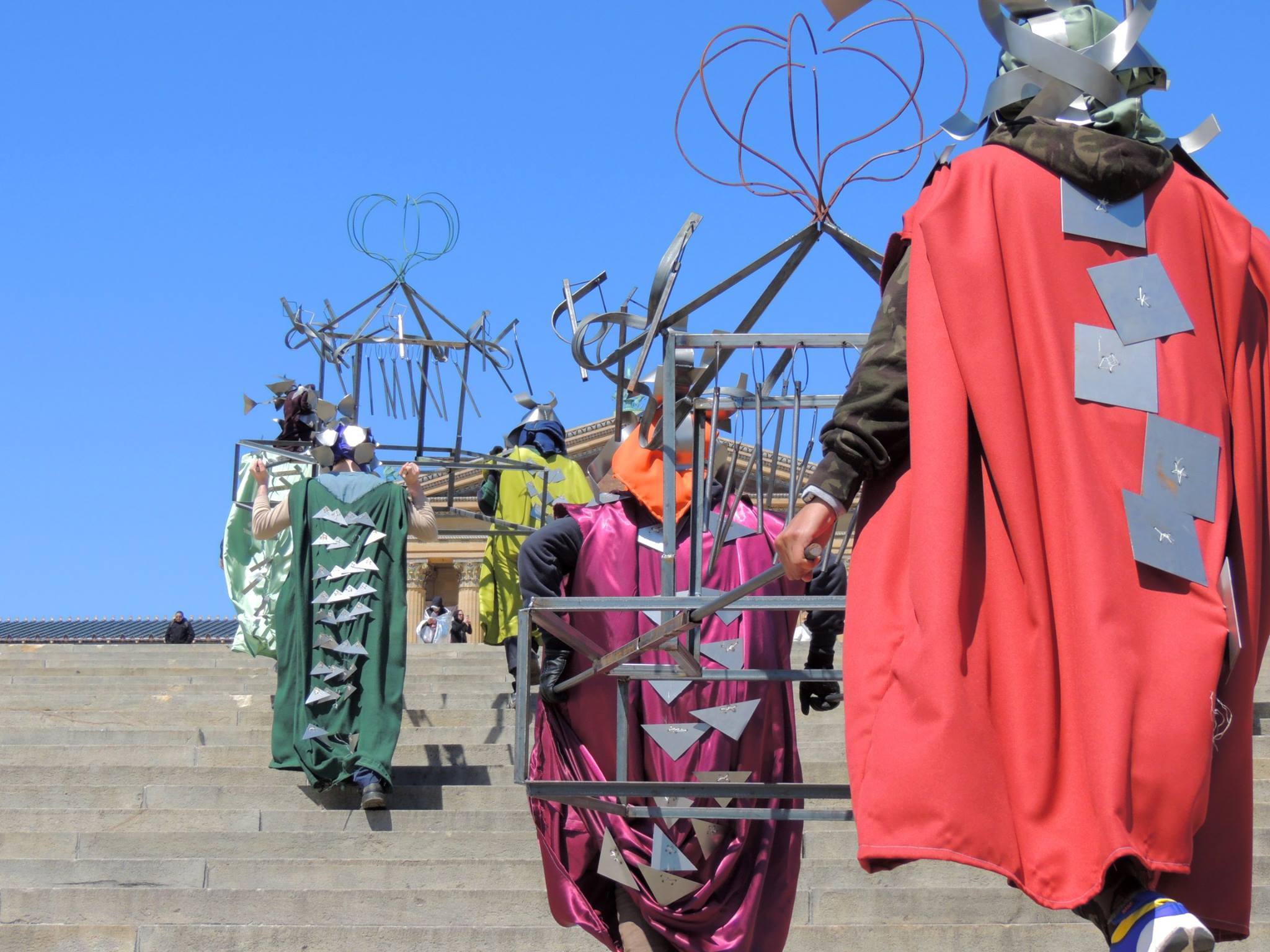 Artists Alex Bard, Pap Souleye Fall, Stefan Vlahovic, Allyson Rebecca Gallagher and others processed up South Broad Street to the Philadelphia Museum of Art. More photos at Tyler’s Facebook posting.