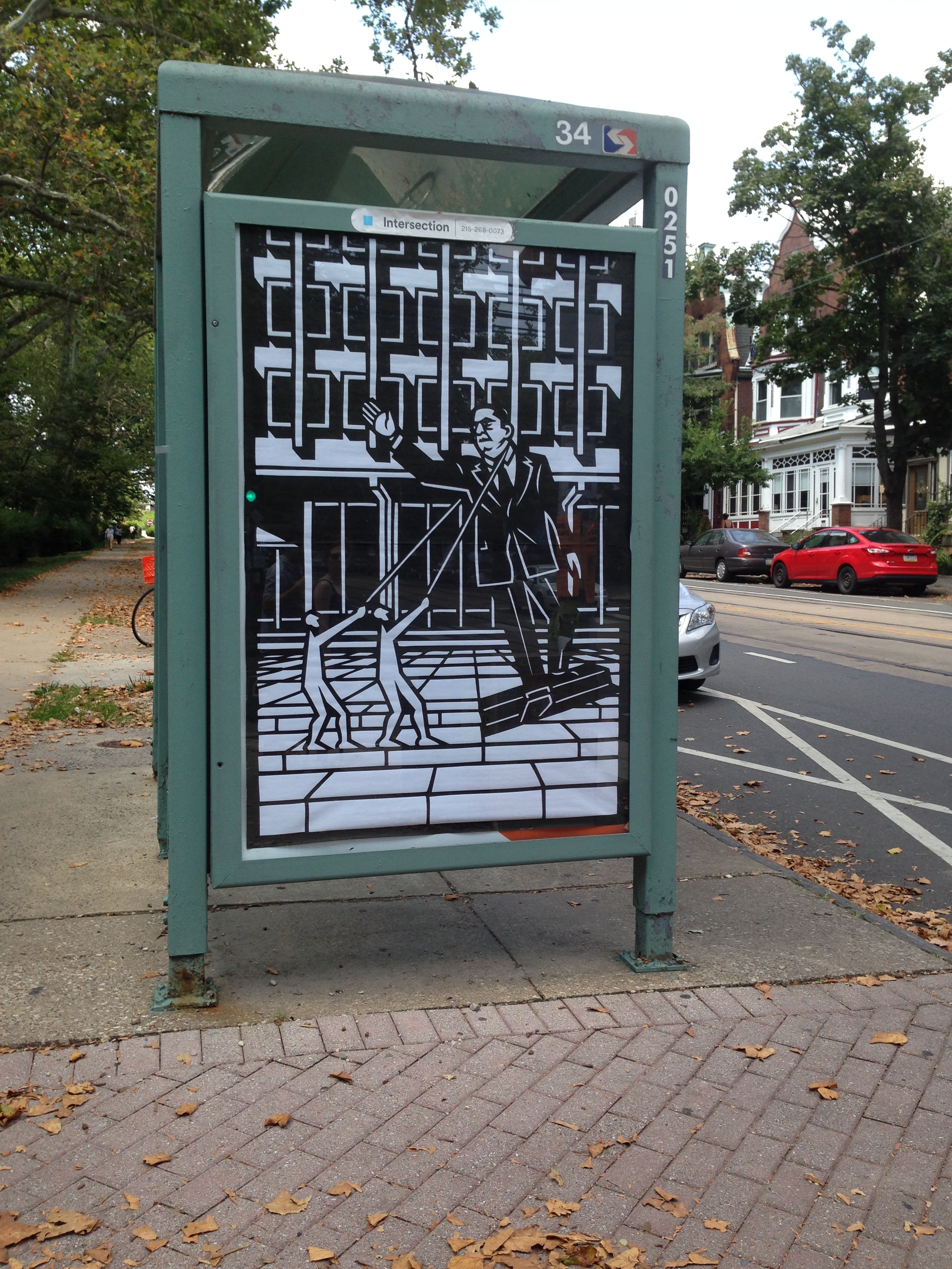 There’s politics in the hot air, which seems like it will never cease (both the hot air and the politics). Be sure to check out what’s available in both, but stay cool, no matter what. Here’s one exhibit that has a good lineup and might be worth getting out for: Truth to Power/Rock the Vote. But I recommend you keep your eyes open for political art on the street, like the Joe Boruchow piece seen below, featured prominently in West Philadelphia.