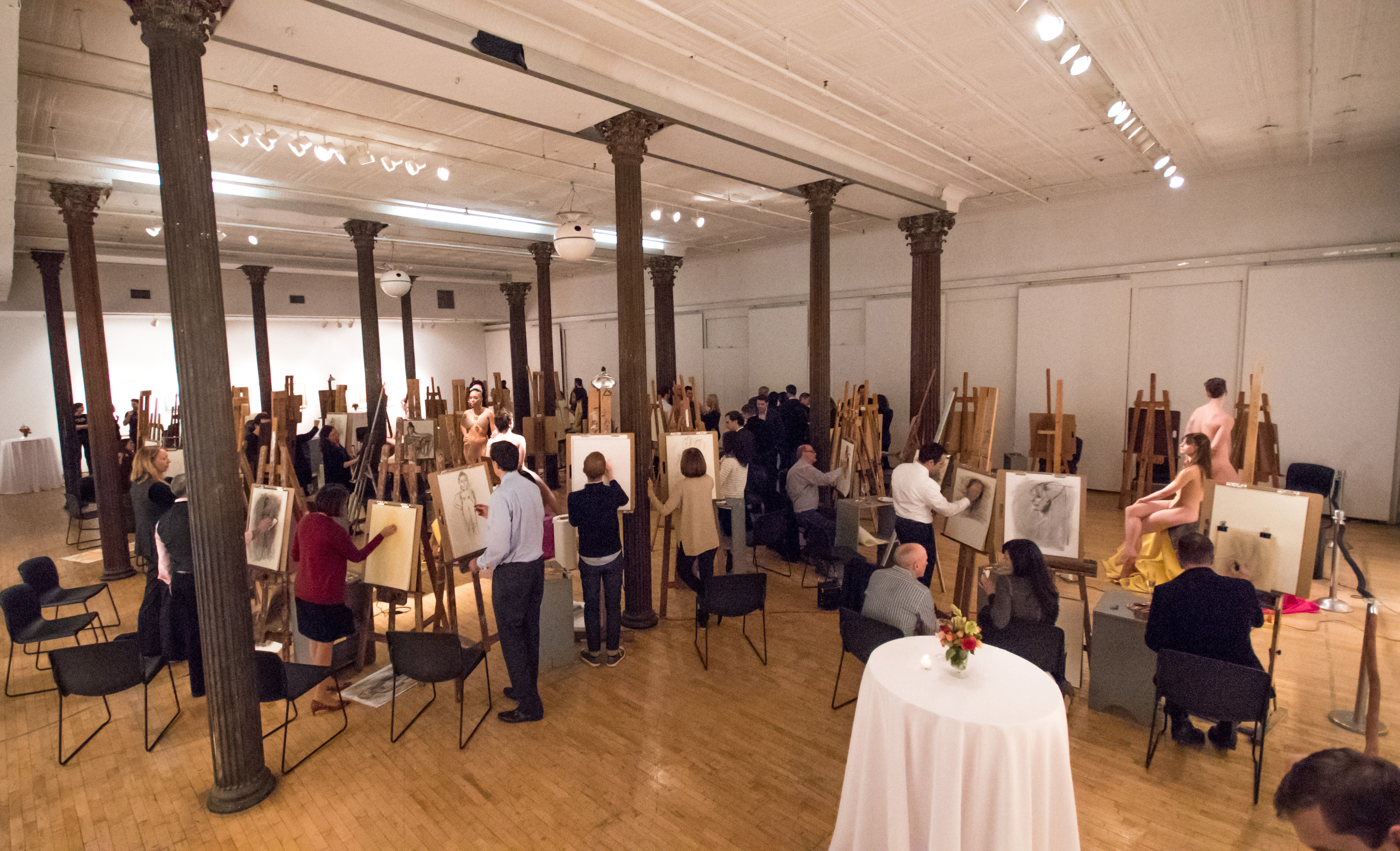 The Academy is the national leader in teaching figurative art and figure drawing and has hosted many drawing events in New York, including a recent one where the surprise guest model was rock star Iggy Pop, who posed nude to be sketched, and a drawing demo with our star faculty that we livestreamed on Facebook Live, drawing over 40,000 viewers. A drawing party like this is a rare opportunity for artists to work alongside each other, and everyone always loves the atmosphere – sketching in groups around a nude model was exactly how artists hung out together in Montmartre, a century ago.
