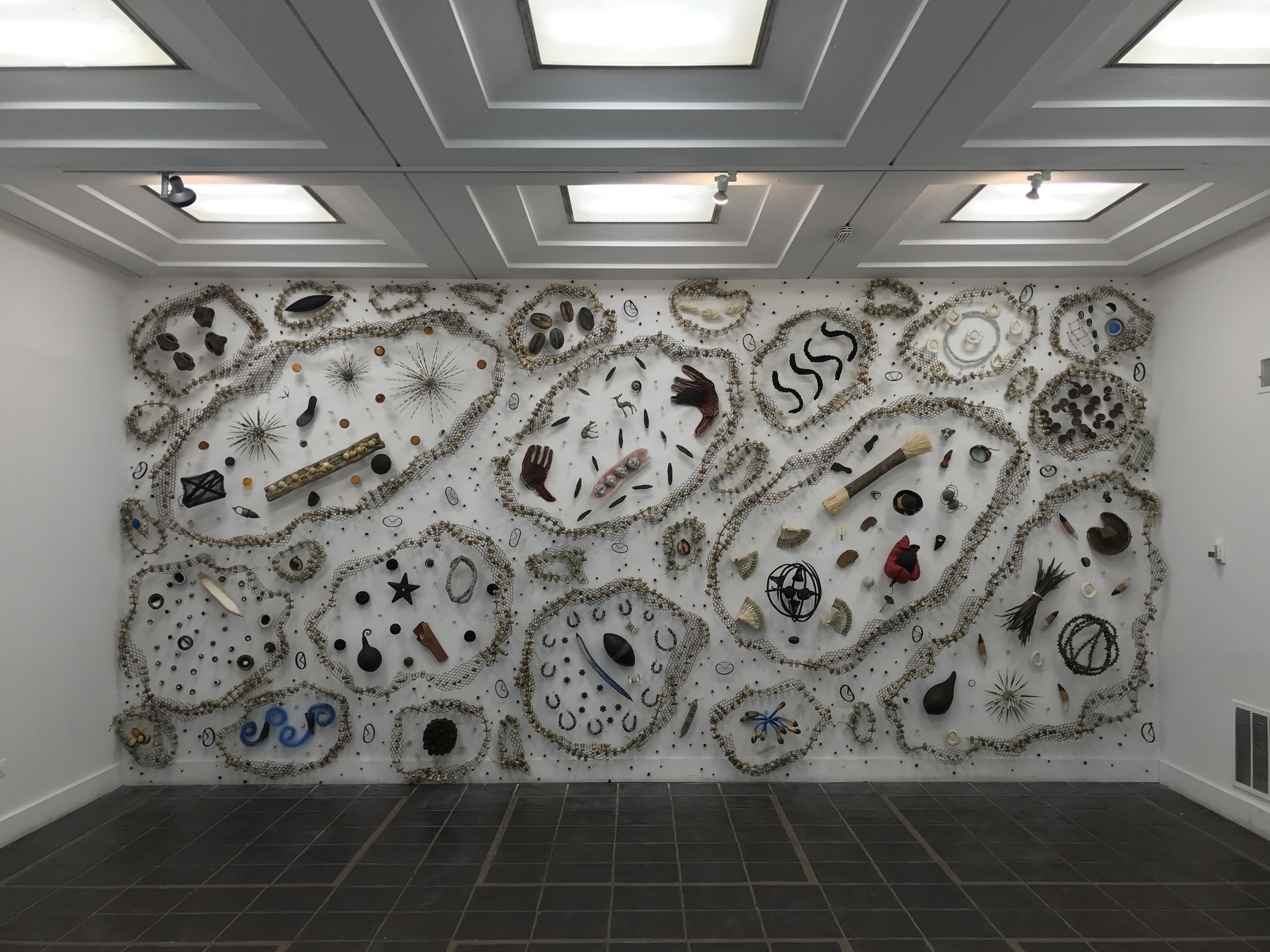 Ron, whose work has been commissioned around the world and who was represented by NY Gallery Howard Scott makes galactic installations out of the merger of found industrial materials and organic matter he collects from the rain forest floors near the equator in Central America. His works make us swoon for their heady beauty and whimsical play with materials. More information and images at the artist’s website. On view at Abington Art Center, May 12-June 23, 2017. More information on the Abington exhibition here.