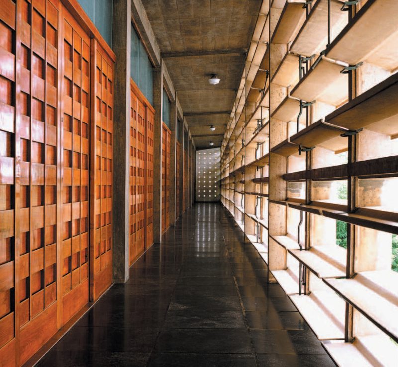Located in Puducherry, formerly known as Pondicherry, the Golconde Dormitory (1935-1942) was one of the first Modernist buildings ever designed and built in India. This unique structure combines the tenets of modernist architecture, such as simplicity, lack of ornament and clean lines, with the practical impositions of the surrounding landscape. Factors such as the hot, humid and tropical climate, and the political unrest in Asia and Europe, meant that there were limitations in the types of construction materials that could be used. Having to adopt an inflexible economy, uncompromising construction standards and environmental sensitivity into his design process, Nakashima wrote in his diary, “since the design was to be completely open, the task was to build a straightforward structure that would solve the problems peculiar to this type of architecture in a tropical country.”