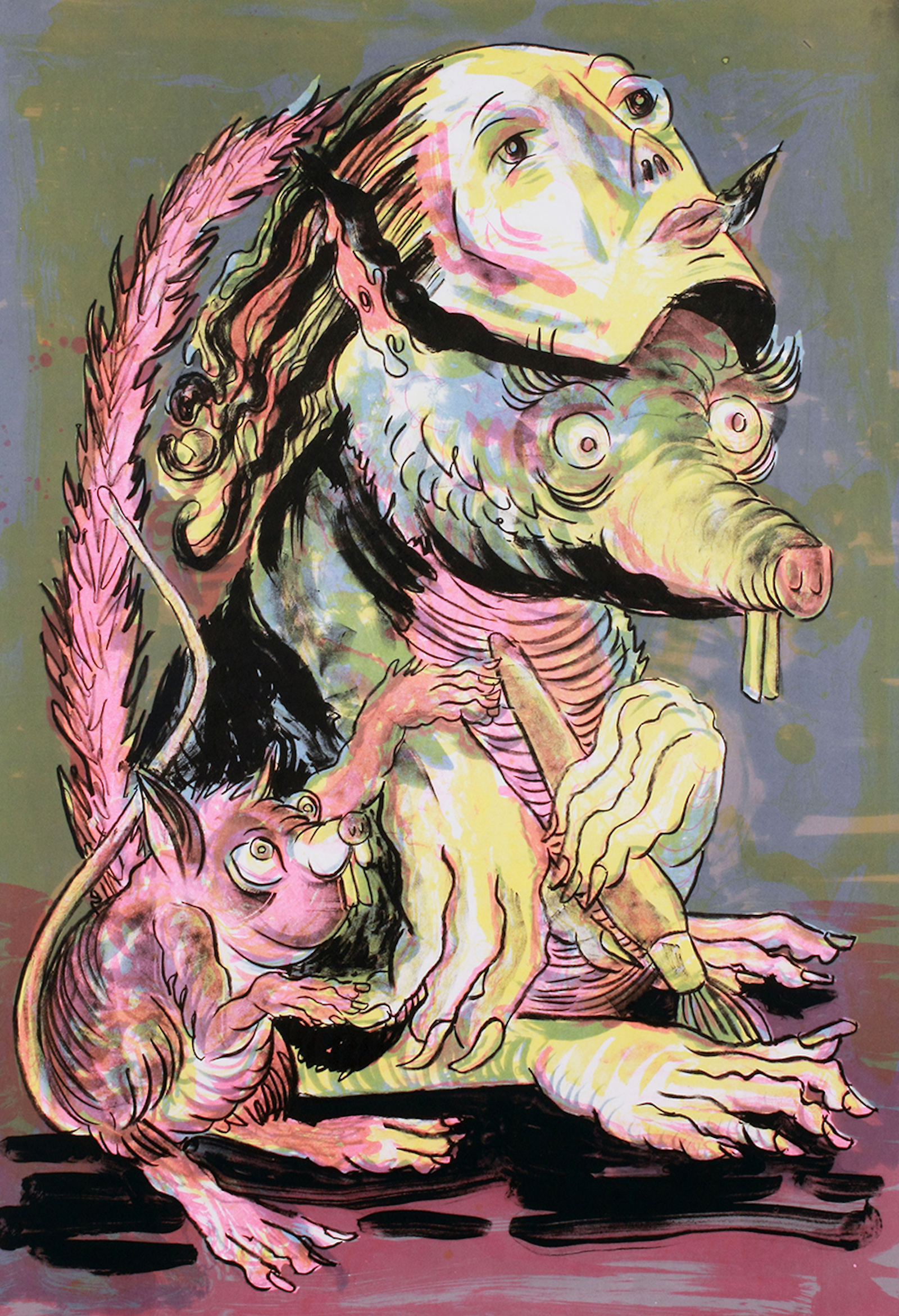 Liz: Yes! What’s great about lithography is that it preserves the autographic mark of the artist’s hand. Most processes change the way one’s drawing looks. A carved line looks different than a drawn line, and that’s what’s desirable, for example, about woodcut. But it means that the marks are transformed by the tool, like a game of telephone. Lithography though doesn’t change the way these marks look, which is why many people see lithographs and assume them to be original drawings.