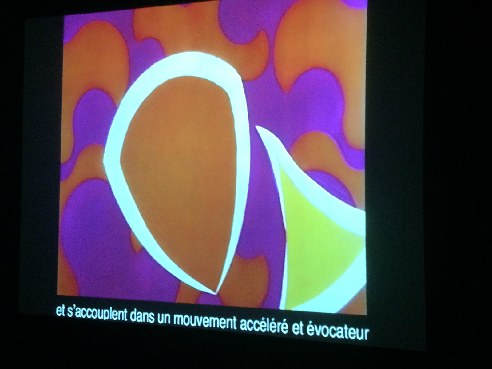 A black-box space within the gallery exhibited two entertaining films I’d never seen, by the French artist Henry Valensi (1930s, re-mastered with subtitles), who used the first color film stock to animate his own paintings. His use of abstract forms which dance to music is similar to the effects Oskar Fischinger created for Walt Disney in “Fantasia” (1940), although Fischinger had done similar work during the 1920s in black and white. The American, Thomas Wilfred, created machines beginning in 1919 that produced moving, colored forms, and his work will be the subject of an exhibition this autumn at the Smithsonian American Art Museum.