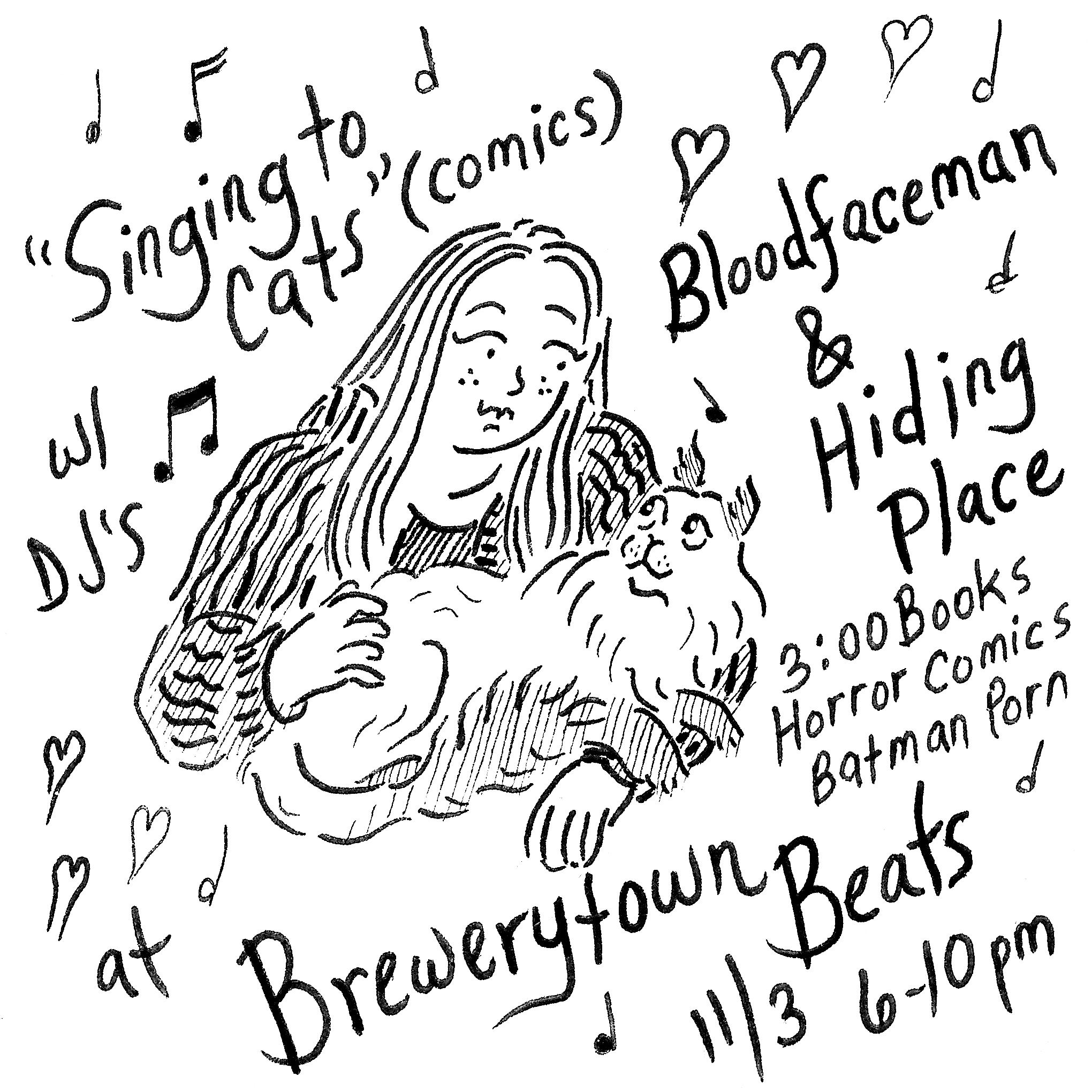 Visit Beth Heinly and buy some real live 3:00 Books at Brewerytown Beats this Friday, Nov. 3, from 6 PM – 10 PM. Your invitation from Beth to “Singing to Cats” (more information here.):