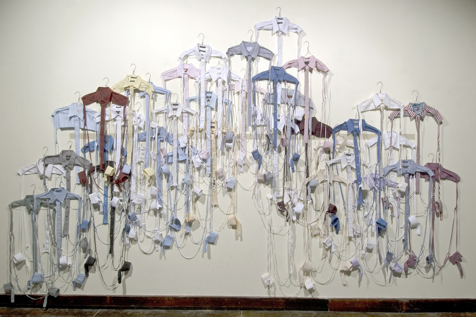 By using diverse mediums from used notebooks, hair, linen and concrete blocks, the artists prompt the viewer to see everyday objects in a new light.