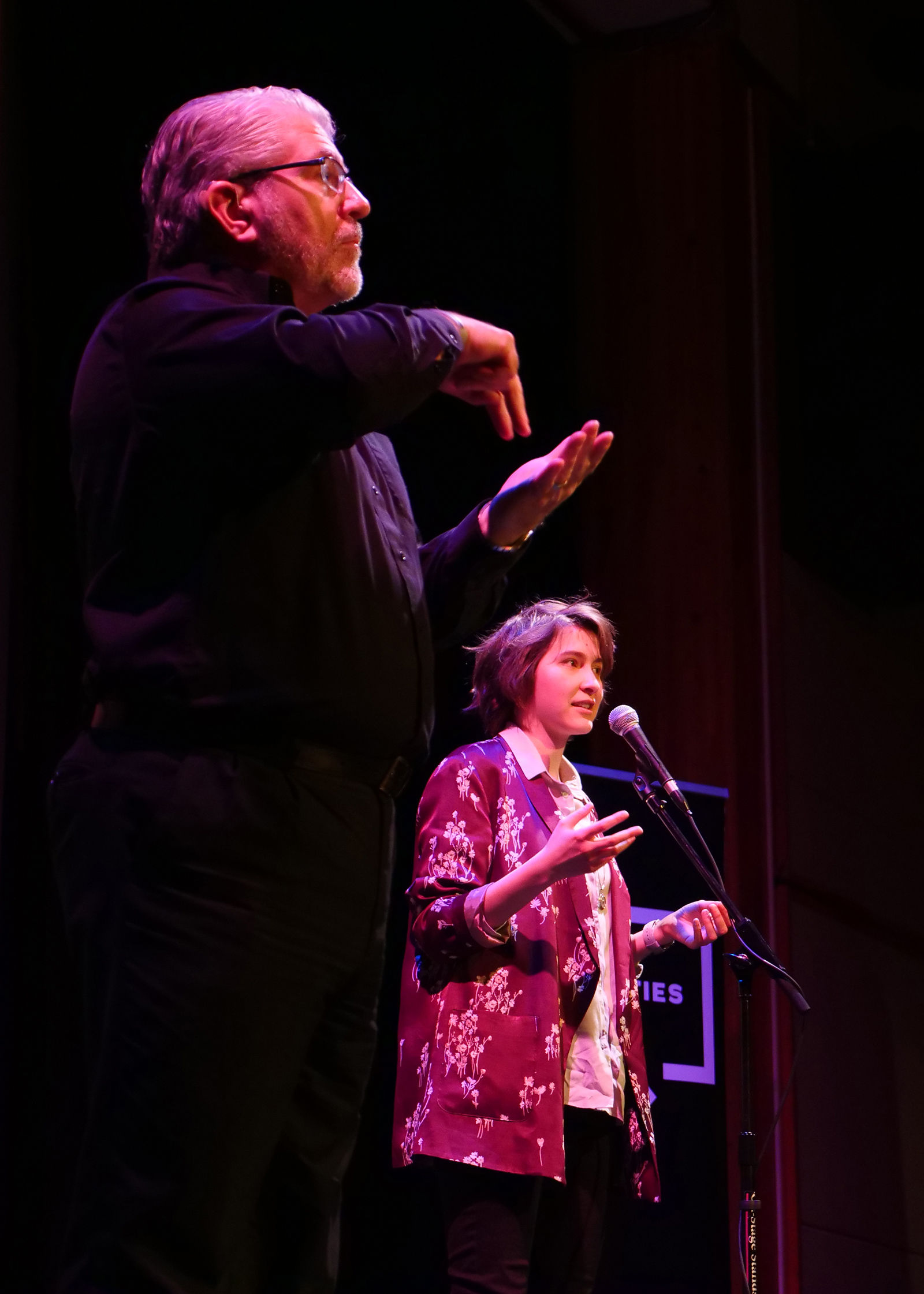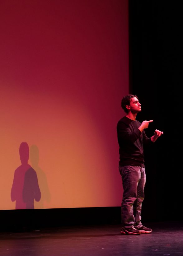 A Story Slam with a difference, Rebirths, Returns, and Comebacks at the International House broadened my understanding of language as it relates to people who are deaf or hard of hearing. The March 27th event, which featured ten local storytellers, half of whom were deaf, was sponsored by the University of Pennsylvania’s Wolf Humanities Center as a part of their 2017-18 programming on the theme of “Afterlives.” I want to tell you about the performance, and about the further digging it compelled me to do. I also want to express my gratitude to Jami N. Fisher, Ed.D., the ASL Program Coordinator in the Department of Linguistics at the University of Pennsylvania, where students can fulfill their “foreign” language requirement by studying ASL. Jami led me into the thicket, and then patiently explained my surroundings.