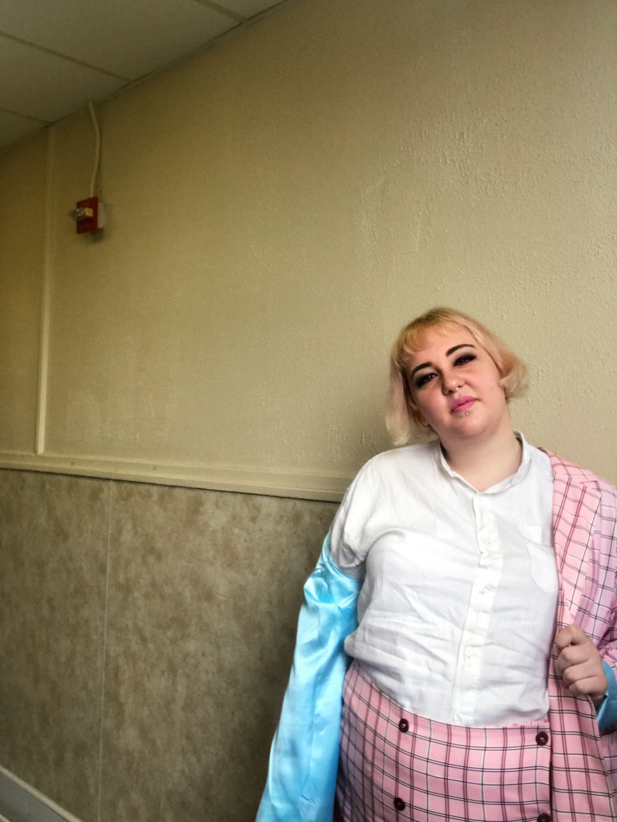 KR: It’s hard to give a solid definition for fatness, but there are categories of fatness that directly correlate to privilege. Small fats have the most privilege; most people would say, “oh, you’re not fat, you’re beautiful.” They typically have an easier time finding fashionable and affordable clothing in their size and physically navigating the world while medium fats, which is how I self identify, face more difficulty with both. Then Superfats, who have the least amount of privilege, are the most often targeted and denigrated for health issues.