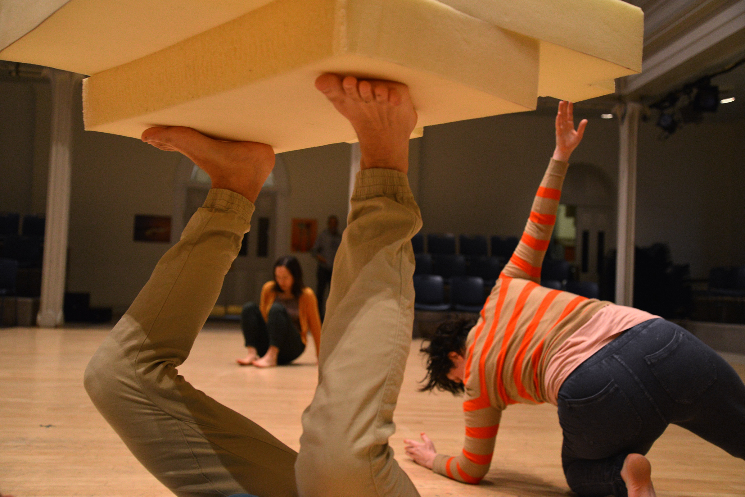 Performers Meg Foley, Drew Kaiser, Jungeun Kim, and Annie Wilson have made a collaborative dance piece that is elemental, painstakingly handmade, rigorous, quotidian, emotionally present, and fiercely relational. The undergird will premier September 13-16 at the Icebox Project Space in the Crane Arts Building as a part of the 2018 Fringe Festival. I caught up with Meg Foley at her space The Whole Shebang to see a rehearsal of for the show. Later we spoke about her process and using movement to complicate and reinvigorate spoken language.