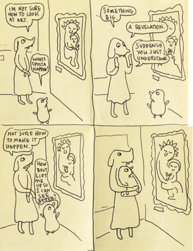 P.S. Please enjoy the attached image to this article. It is by Lynda Barry. I scraped the comic together from The Near-Sighted Monkey tumblr, “for and by the students of Lynda Barry’s comics classes at UW-Madison and elsewhere.” It really sums it up.