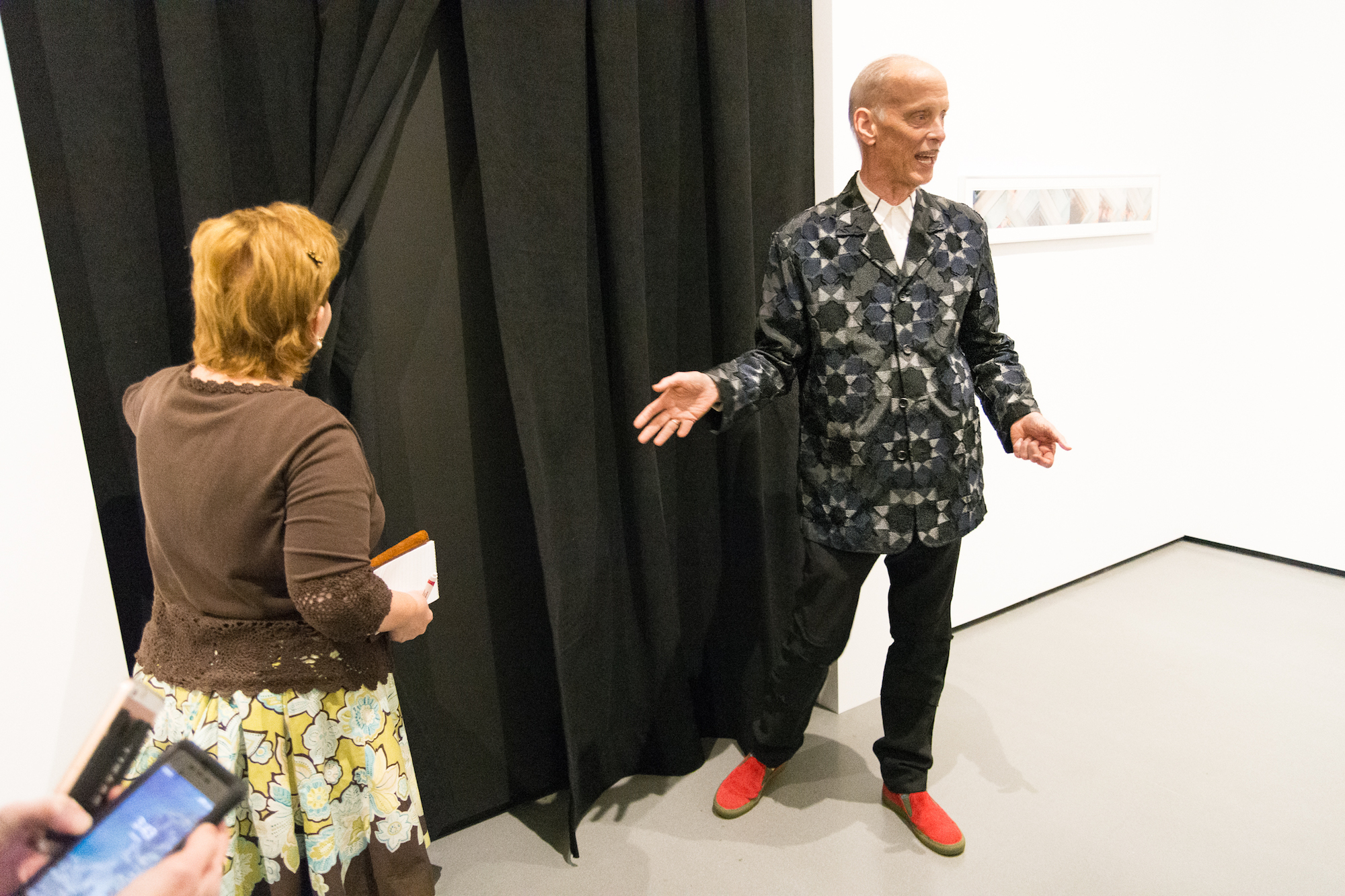 Perhaps the most touching piece in the show is one that Waters created as the antithesis to the vulgarity his work (the “dirty stuff,” as he might put it) paved the way for in popular culture. In a real video room, a group of elementary school kids are on screen performing a table-reading of a Bowdlerized version of Pink Flamingos, the film that most emphatically launched the careers of Waters and Divine. Perhaps, Waters noted, the most shocking aspect of the piece is its sweetness and optimism, which always lay at the center of the film.