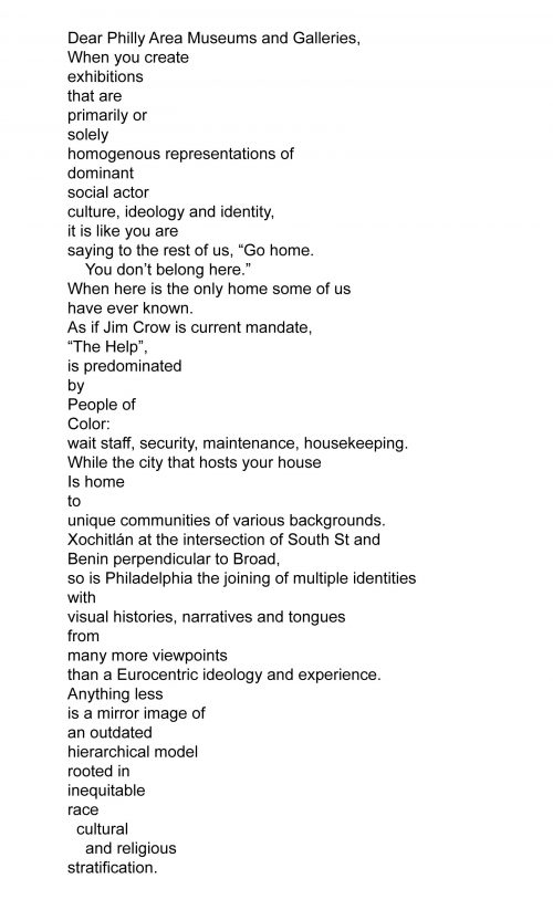 Dear Philly Area Museums and Galleries,