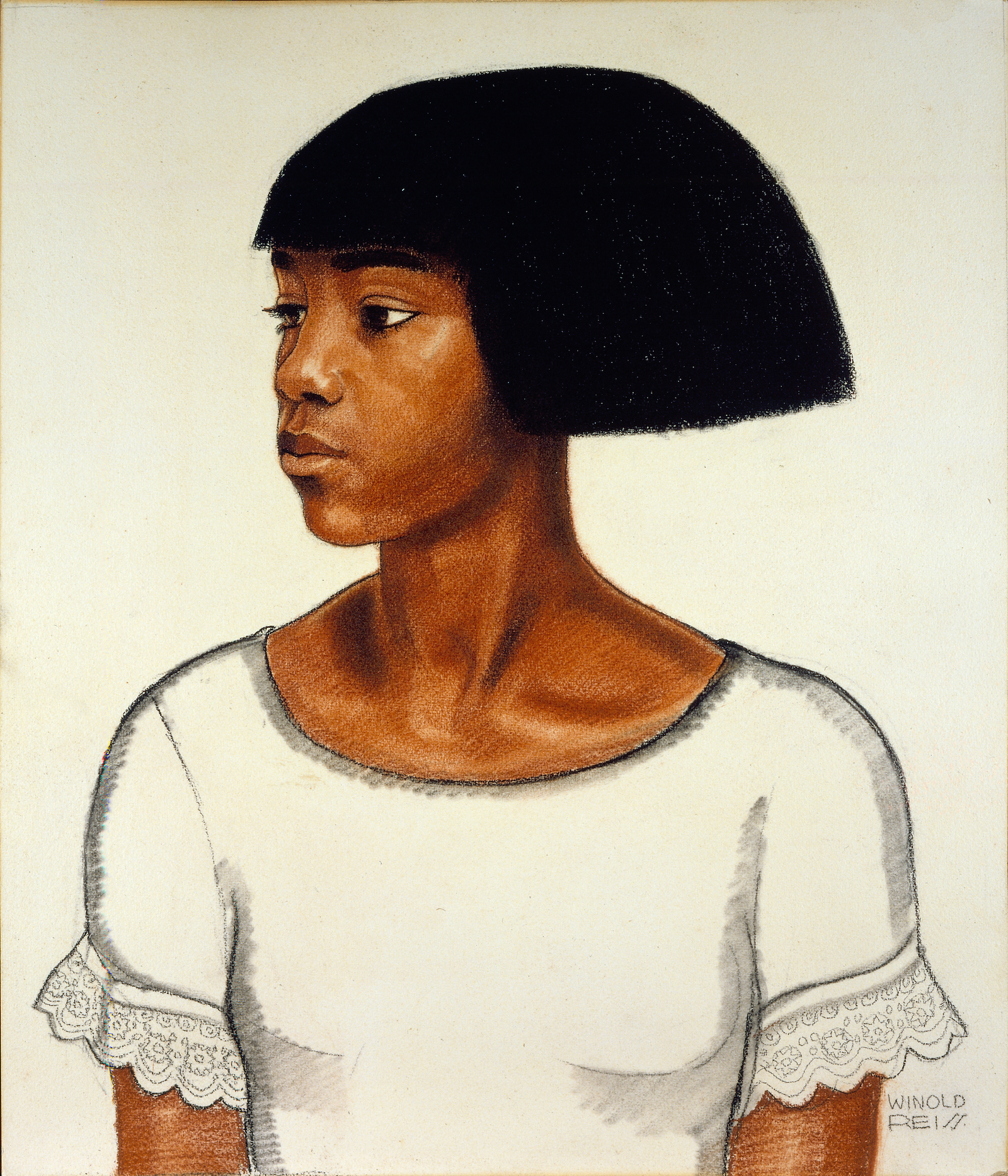 Haygood’s take on the Harlem Renaissance emphasizes its importance to the archive of black everyday life. And in truth, the period between roughly 1920 and 1940 saw black Americans documenting and celebrating their experience like never before. Much of the catalog centers on this documentation — making ample use of both studio and street photography, as well as music posters, book jackets, postcards and any number of other print media artifacts. In line with this more ethnographic ethos, the “high art” selected for the text, and I imagine also on view in the exhibition, tends towards the quotidian. Individual portraits in domestic settings abound, as do larger group scenes of Harlem’s vibrant, jazz-centered nightlife. This is not to suggest that the quality of the work suffers. Domestic scenes by Loïs Mailou Jones and William Henry Johnson are flat out gorgeous, as are German emigree Winold Reiss’s pastel studies of everyday Harlemites. I suggest only that there is a less observational, more mythic strain in Harlem Renaissance art and culture which gets, understandably, overlooked in Haywood’s narrative.