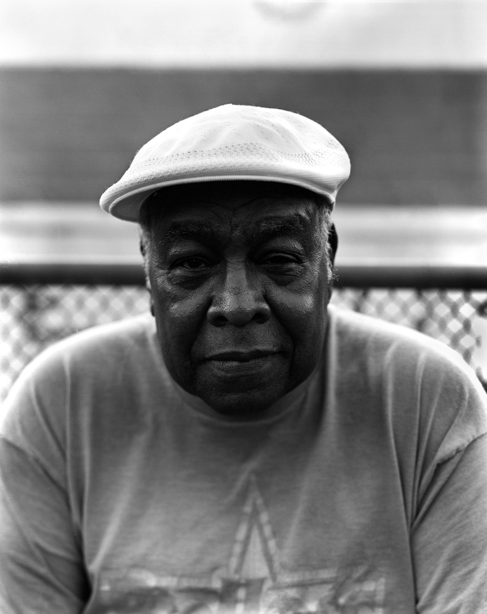 Other notable figural works in the show include Osmyn Oree’s “Uncle Fred” (2018), a powerful portrait of an older black man, one of two large-scale photographs included in the show that ask the viewer to see figures as people through the height each is shown at; and Salina Almanzar’s especially deft “retablos”, small devotional images, are both beautifully made and focused on the archetypical, yet personal nature of her tales of family life. In “Con la música por dentro Abuelo”, (2019), and “Nuyorican Mama”, (2019), two of four included in the show, we glimpse the beatification of household saints. To the right of these works are, Mike Benvenia’s sculpture “Physical Therapy” (2017), made of found materials, stands against and away from the wall like two figures teetering on the edge.