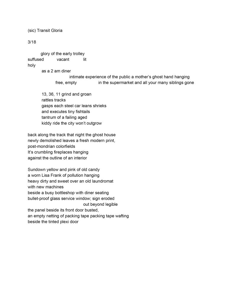 Artblog contributor Levi Bentley writes an original poem "(sic) Transit Gloria" based on travels through Philadelphia via public transit. We are delighted to provide a platform for Levi's poetry on Artblog!