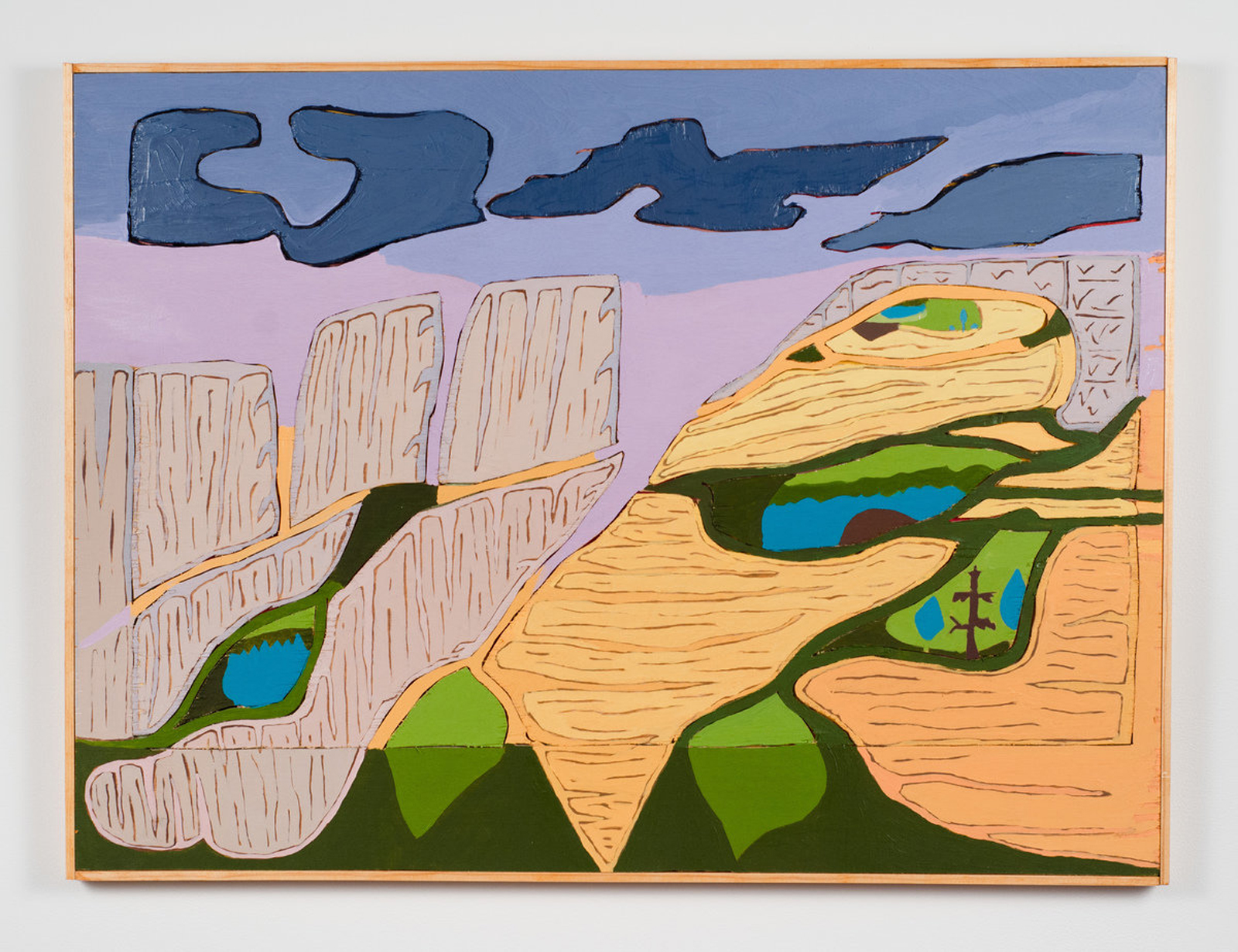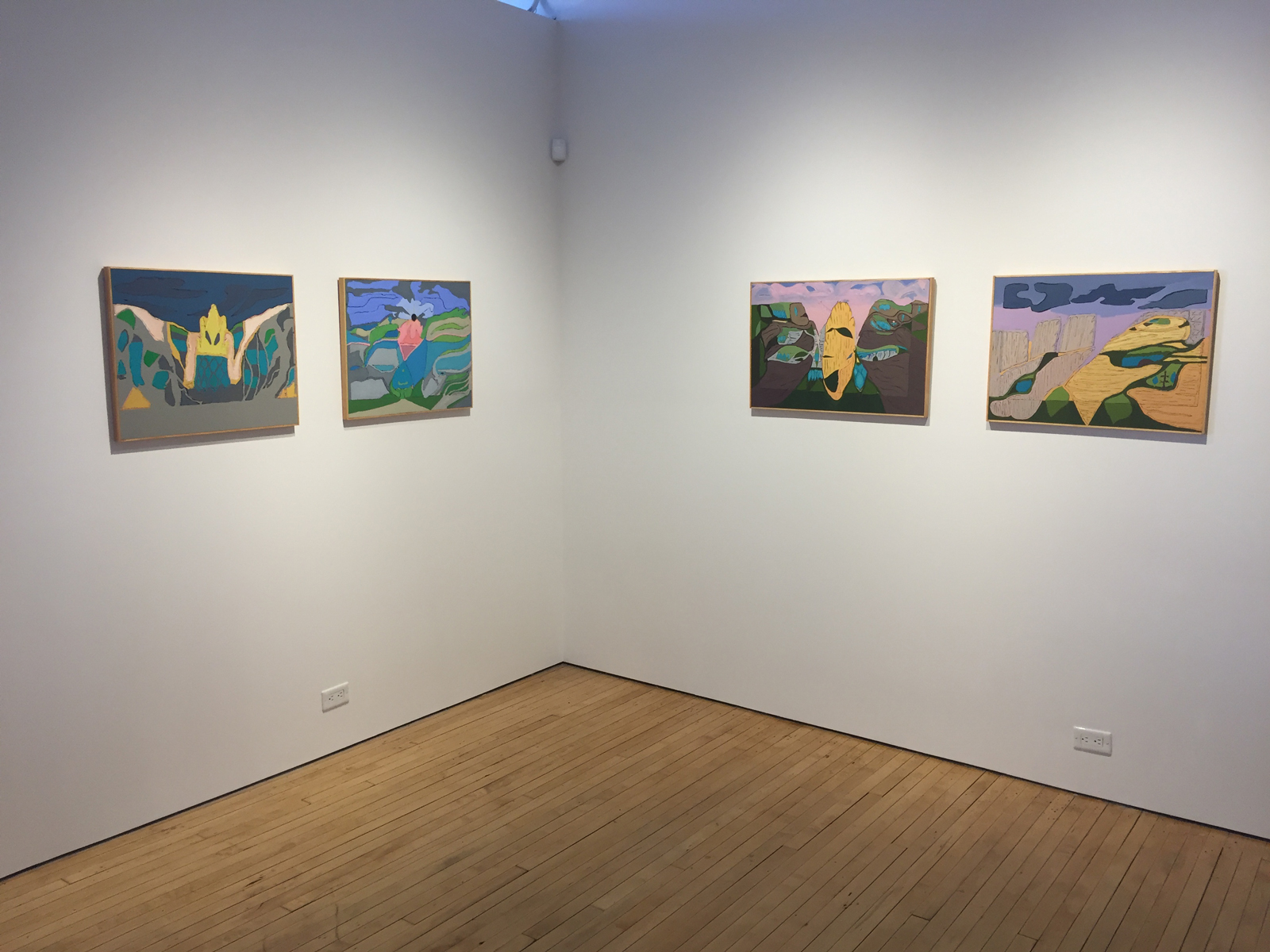 This mysticism expands into another Raskin painting series: “I imagined…”. These paintings feel, to me, like the pages of a tropically-set comic book stripped down to the essential shapes and colors. Visually, they are complex, and yet approachable. Accordingly, one might think that the long titles (for example, “I imagined having coffee together and remarking how high and flat must the cliffs have been in order to push against the sky that way”) would detract from the art, perhaps giving the artist something to hide behind, or acting as a way to inject meaning that lacked from the visuals. I did not find this to be the case. Instead, the titles reinforce the interesting mythology that Raskin forms throughout the series–a fantasy that extends into her body of work on the whole. I found the “I imagined…” paintings to be some of the most thematically successful in addressing the thesis of the exhibition: they felt powerful, but remained understated. Their location near the fringe of the exhibition speaks to the “outsider” status that these two artists push to redefine, and their imaginativeness brings a fresh perspective to their project of response, or homage to other artists that Fleisher-Ollman shows and represents.