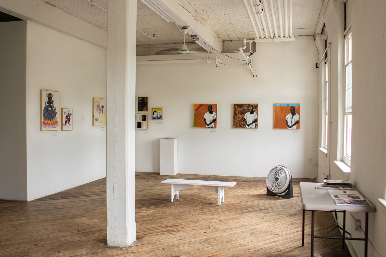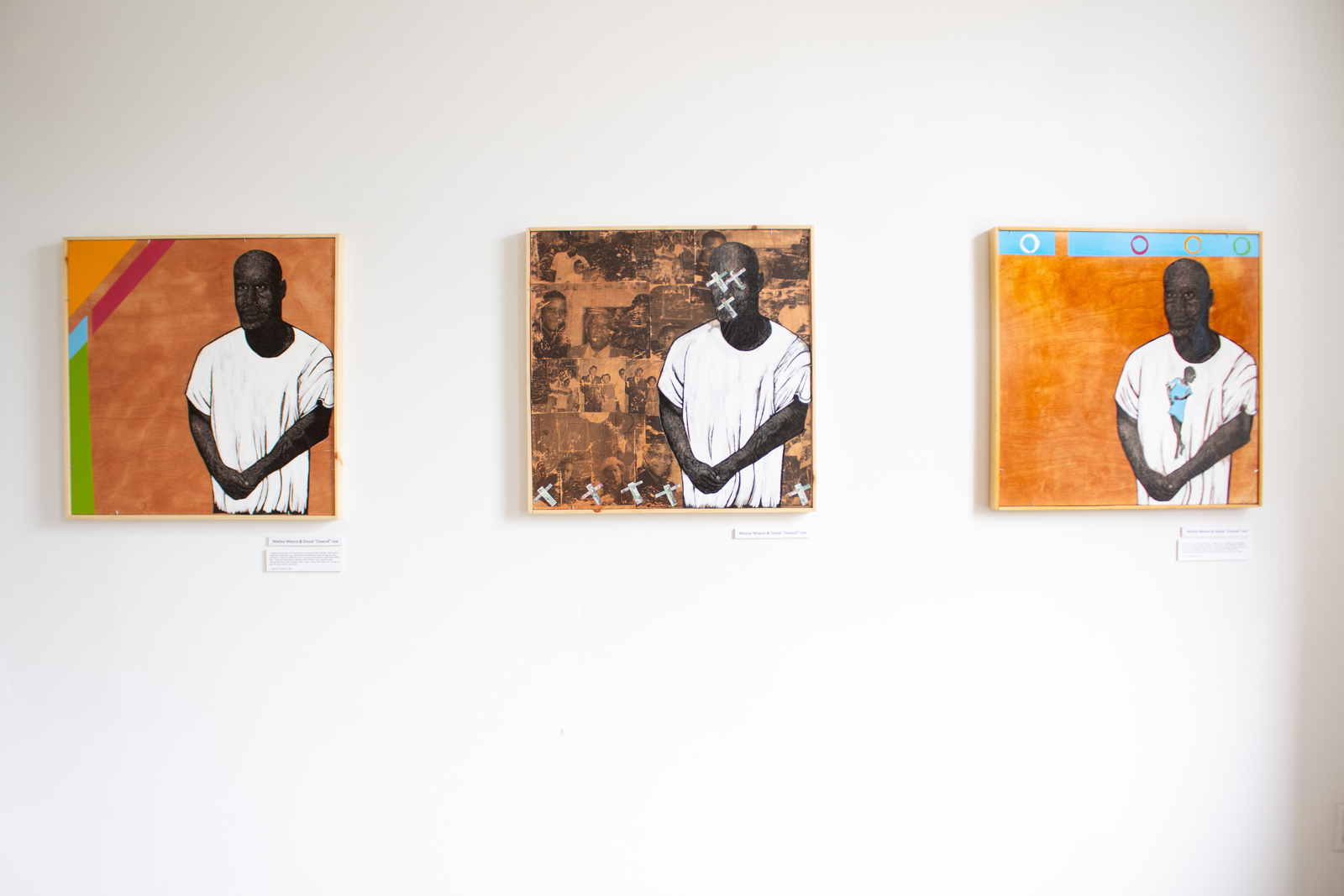 The exhibit features prints by Matice Moore in collaboration with Dawud Lee that are decorated with “X’d” out images of black men emerging from a bronzed, paper mache-like collage of old photographs. The work vibrates with the harrowing prescience of a Rodney McMillian piece and the simmering, hopeless anger of a Rage Against the Machine video.