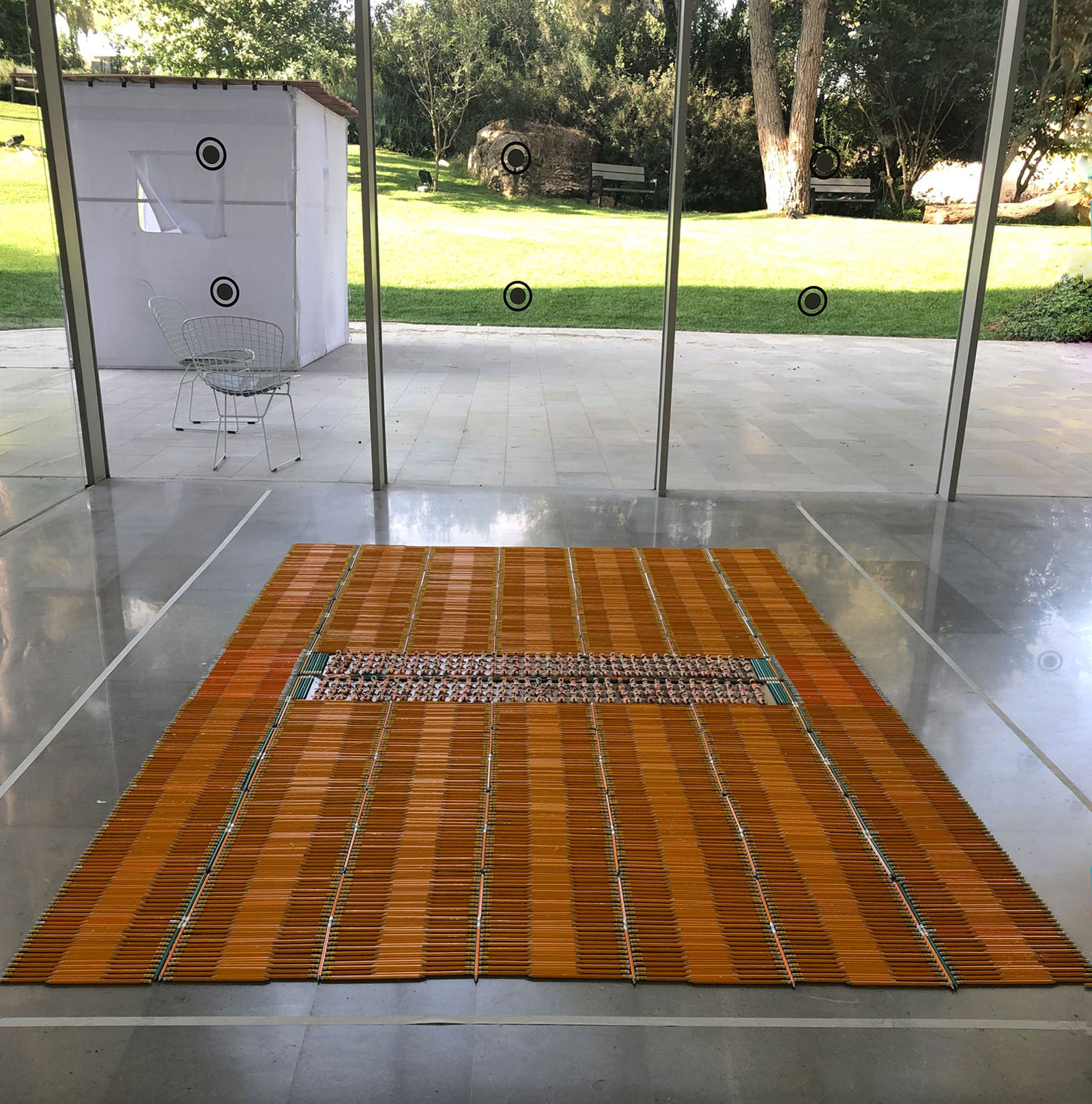 There are eight exhibitions on view at Hechal Shlomo. “Human Nature: Shared Sensitivities,” curated by Dr. Smadar Sheffi, examines converging points of reality “where opposites meet and are penetrated by the doubts that such a point exists.” A work in this show comprised of rubber bands and based on The Fall, a 1956 novel by the French author and philosopher Albert Camus, by Vardi Bobrow addresses ideas important to the artist, including “duration, accumulation, and constant transformation.” Bobrow has had recent residencies in France. Sagi Refael, curator of “Table of Contents/Table of Contacts,” worked with the Jewish Artists Initiative of Southern California to address disagreements through a series of interviews of artists that play simultaneously, creating a cacophony of sound; the show also includes artist books. “Living Under Water,” curated by Andi LaVine Arnovitz, includes works by six artists who address climate change, stating that for the sake of Heaven, we must repair the world (Tikun Olam).
