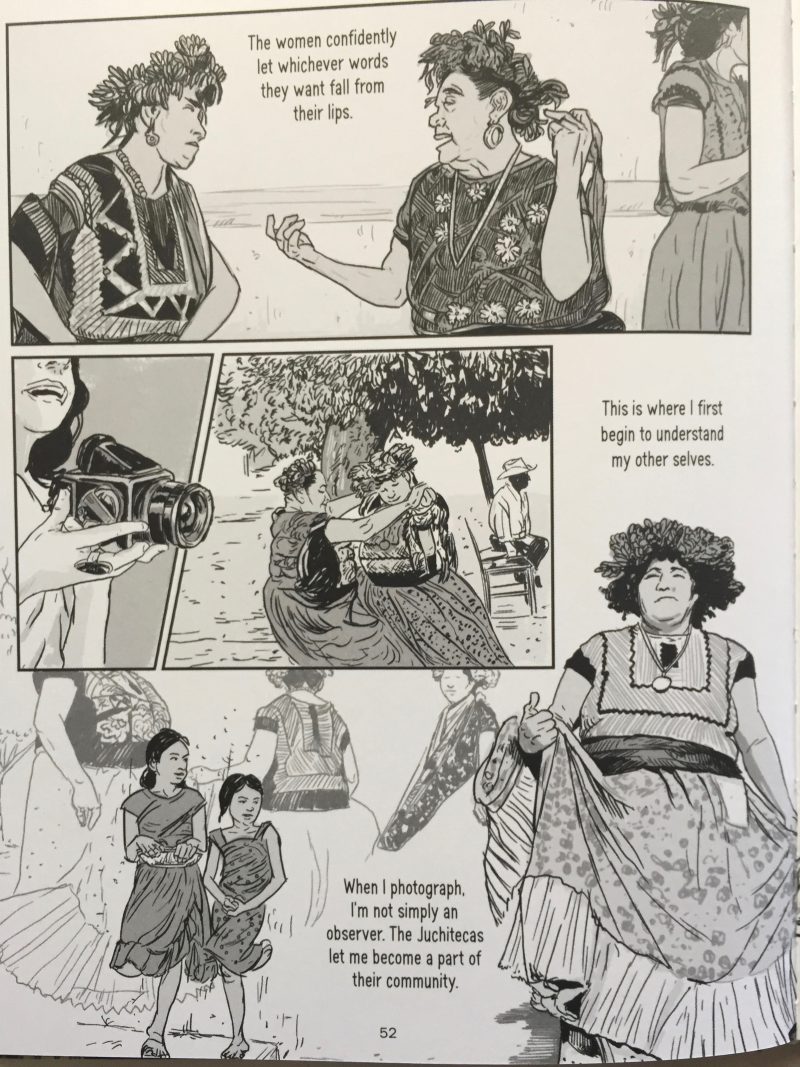 I have never seen a format such as this biography of the major, Mexican photographer, Graciela Iturbide. It is part graphic non-fiction; but it is also illustrated with Iturbe’s own photographs and was produced with her cooperation. I suspect it was intended for young readers, but nothing of its language speaks down to them, and given the adult interest in graphic narrative and the ongoing interest in reclaiming women’s histories, it will likely find a much broader interest – and it should. The illustrations intentionally cite much of the photographer’s own work, so that together with the actual examples it gives a reasonable survey of her subjects and approach.