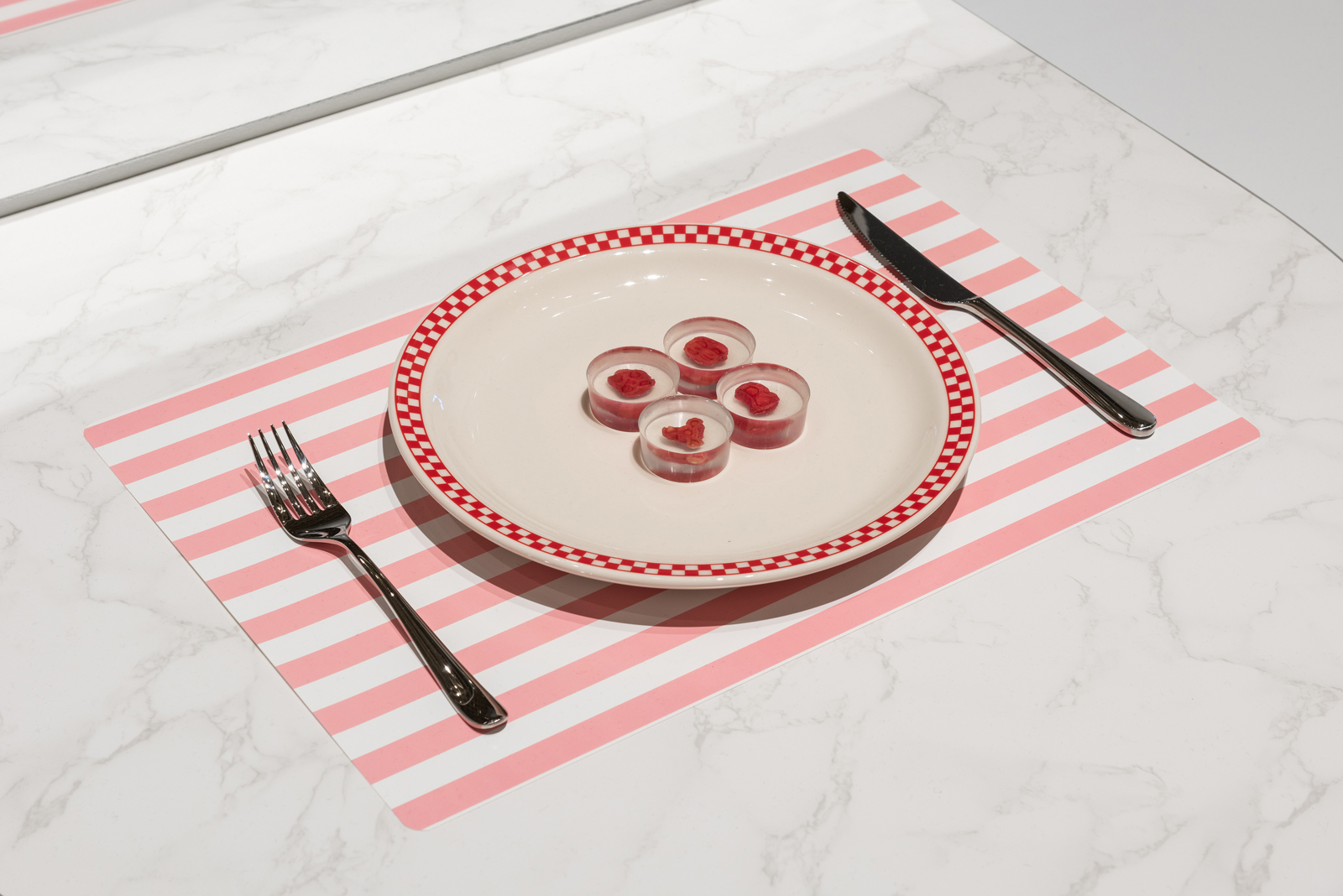 With that as the backdrop, yet perhaps unknowingly, the Philadelphia Museum of Art hosts Designs for Different Futures (DfDF), an immersive, interactive gathering of genius work that explores life at the intersection of technology–from textiles, to medicine, to food, to surveillance, to architecture and beyond–with art and speculative creativity. The works are heavily curated, presenting a kinetic tactility for many of the displays, a far cry from the cordoned off “don’t touch” typical of museums. DfDF is a show tucked behind the often garish modern art it shares the museum with–Twombly’s, DuChamp’s, Mondrian’s, all comfortably behind glass and analyzed ad nauseum. Many of the works in Different Futures though often beg to be touched, listened to, experienced–there is actual signage encouraging such. Sure, there are inaccessible displays such as the textiles section’s Iris Van Harpen’s organic couture invoking “bad guys from Mockingjay” vibes for instance, but there are also electronic vending machines where one can buy and sell personalities. The scope of Different Futures, in fact, may be a bit overwhelming.