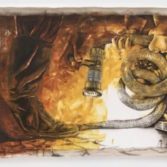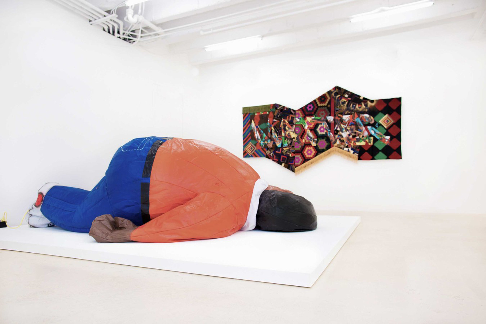 “Laocoön” is a large scale inflatable sculpture of the cartoon character Fat Albert, inflating and deflating. Biggers describes the work, “He’s on a pump, so he’s actually breathing his last breaths”. Though Biggers claims the work does not represent a specific death, stating “That piece was born out of a lifetime of this dysfunctional relationship between African-Americans and America—not anything that happened within the last four or five years…”, Aldridge assumes a highly contemporary reference in their article. Writer Aldridge, viewing the work at the height of Black Lives Matter aligns the image specifically to that of Michael Brown, whose death at the hands of police in Ferguson, MO, was portrayed far and wide mainly due to the police’s negligence and disrespect for human life in failing to cover Michael Brown’s dead body lying face down in the street.