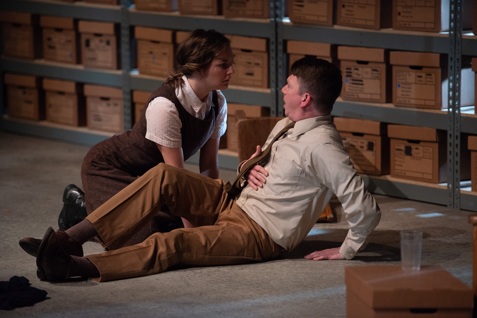 Nikolai learns to lie for a beautiful ideal that becomes a revolution which devours its own children. He extols the virtues of “The Black Magic Marker: The most useful tool in all of communism.” Redactions conceal the terrible individual sacrifices that must be made for the collective and the places where theory, no matter how elegant, fails to align with the practical exigencies of building a socialist paradise. In Joseph’s play, as in history, however, Nikolai works his way up from redacting inconvenient truths to “redacting” inconvenient people, ultimately presiding over the period of bloody excess that came to be known as the Great Terror, or Yezhovshchina, after its principle architect. Hundreds of thousands were framed, accused of counter-revolutionary activities, prosecuted in show trials, and put to death, a model of justice that, as depicted in Describe the Night, felt remarkably unexotic given our present political situation. Just last week, former Deputy Attorney General (and American hero) Sally Yates accused Trump of treating the U.S. Department of Justice like “his personal grudge squad.” The difference between Trump and Nikolai Yezhov is that Trump needs no pretext for his lies—there is no beautiful ideal, only Trump’s ugly, naked self-interest and the Republican apparatchiks too afraid of the consequences of disloyalty to resist.