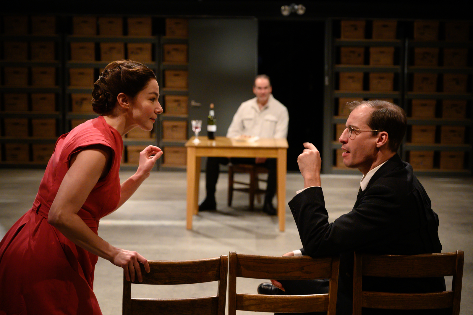 Director Blanka Zizka specializes in narratives of intergenerational trauma, of individual lives mutilated by the forces of history, and with Describe the Night she both plays to her strengths and achieves a contemporary resonance not seen at the Wilma since James Ijames’ Kill Move Paradise in 2018. The production features performances calibrated to prioritize the world-historical significance of the characters over their emotional lives. The best of all possible productions might make more space for the actors to be authentically vulnerable, but as it is, Zizka’s Describe the Night is an intellectual triumph. Dark times call for difficult theater, and Describe the Night is difficult in all the right ways—philosophical, ingenious, and in its own, odd, sidelong way, frighteningly true-to-life.