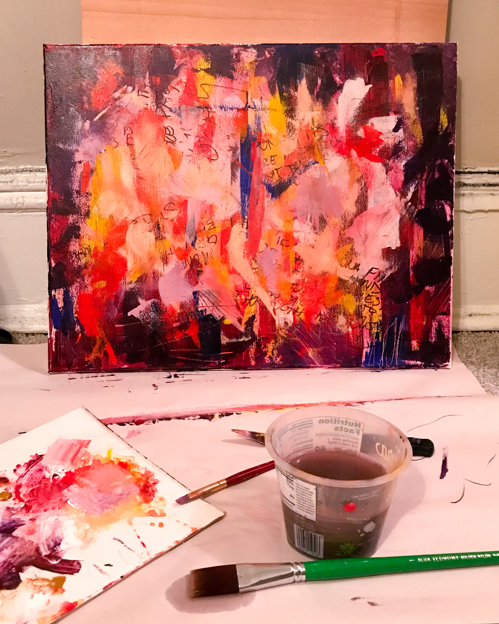 My name is Arianna Mohiuddin. I am originally from the Mississippi Gulf Coast, but have lived in Philly since June 2018. I’m a physician by day and abstract artist by night. I’m 100% self-taught. I work primarily with watercolor, gouache, and mixed media, and sometimes 3D mediums like tree trunks. I am also a doctor on the front line of the coronavirus pandemic in Philly. I am on a break from work for one more week, but I go back on Thursday. I hope the N95 masks I frantically ordered off eBay get here in time, because Amazon sold out a long time ago. It’s getting scary because I just wrote out my advance directive and will, but I’m trying to be strong. I am limiting TV and social media, as these have become too stressful.