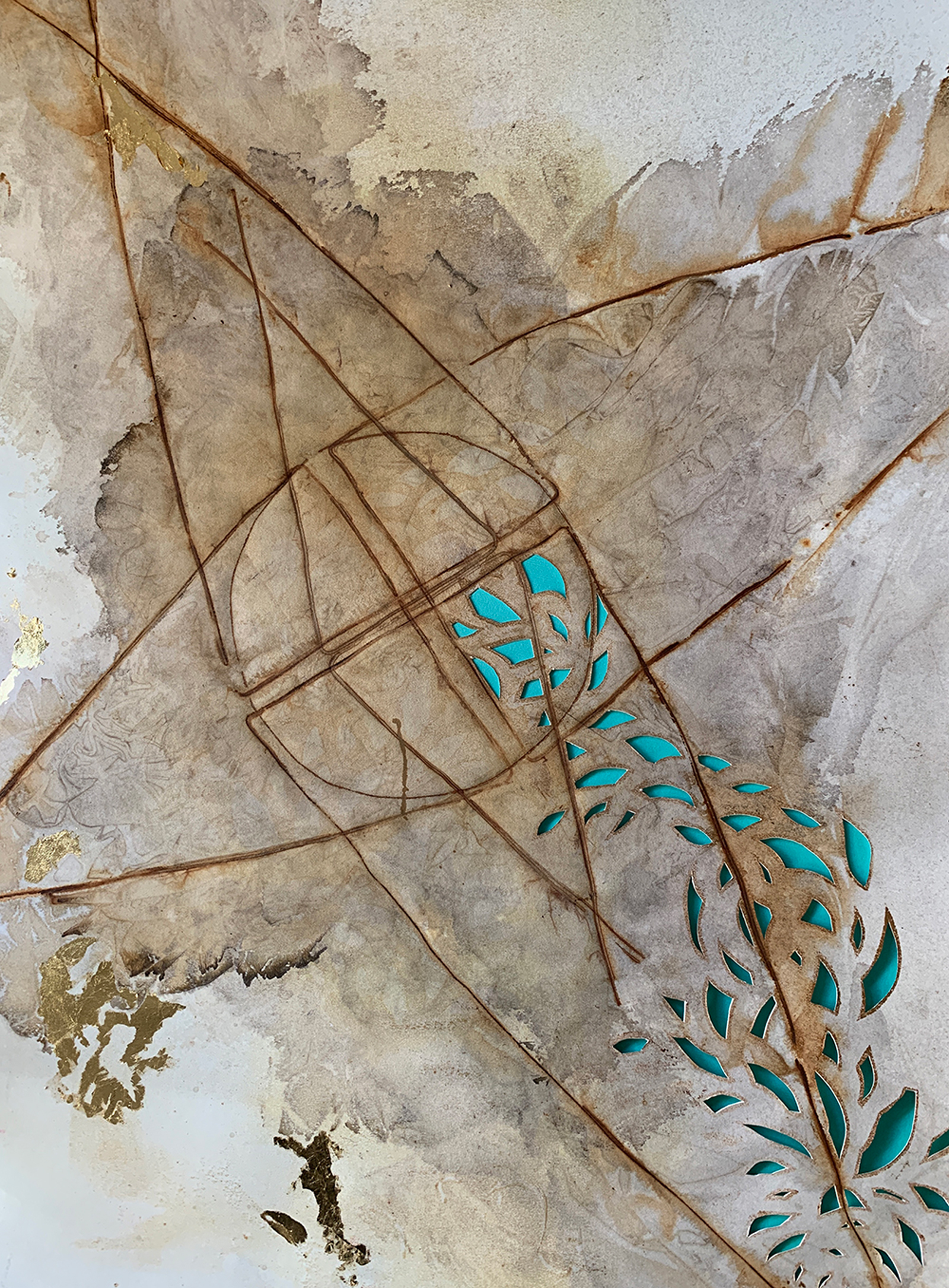 I’m working from my home studio now, which is press-less. This forced me to take a deep dive into my flat files looking for previous prints to reimagine. I discovered the act of excising parts of my older work to be a creative exercise that fits the moment; slow, careful, deliberate. I miss my regular classes with press access, but I’m finding a creative surge searching for new methods and materials.