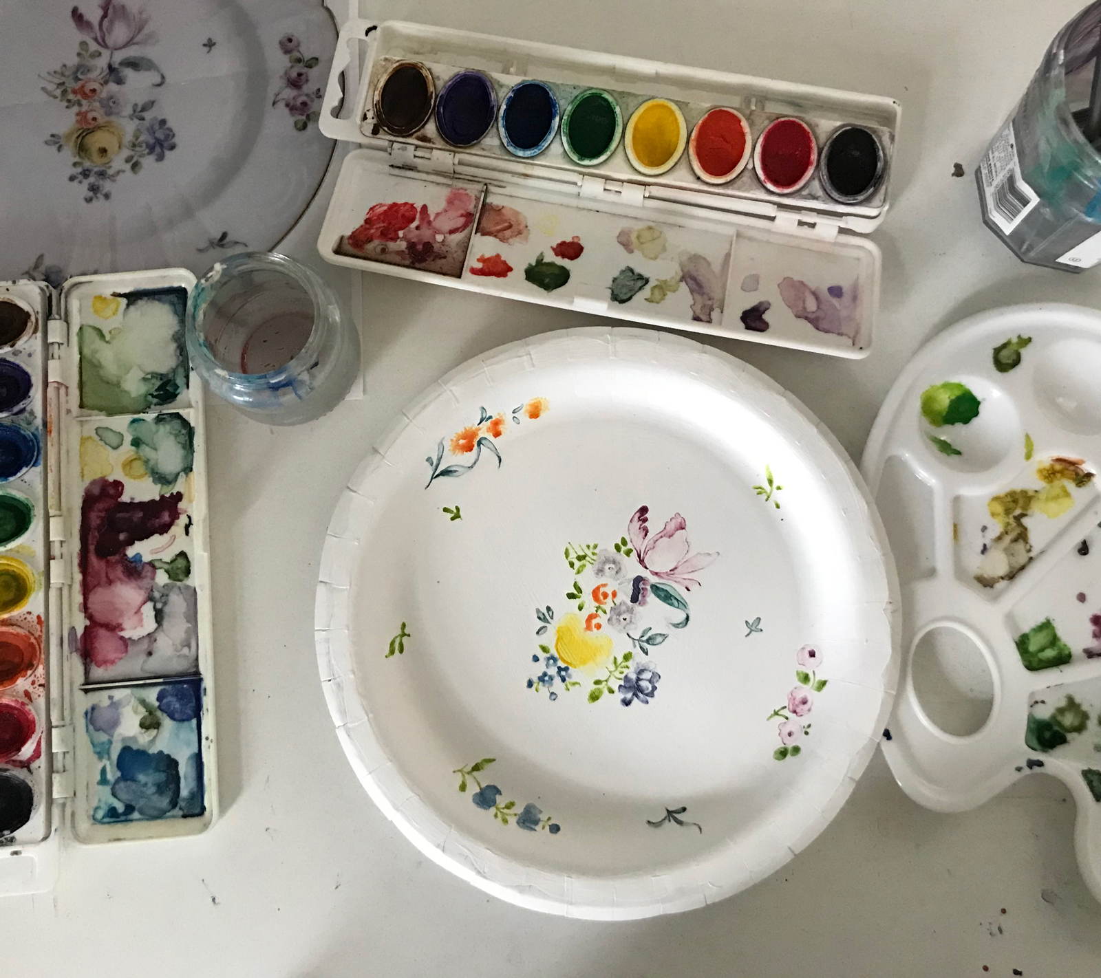 I just had my second child and was already home on unpaid FMLA when they closed everything. Now my three year old son is home with us and I’m very lucky to have the time with both of them. We would have kept our three year old in daycare so that I could get work done from home, but this is surprisingly better. I didn’t realize how much he needs to bond with our new baby just like I do. I wish my husband wasn’t missing it all. He’s a first responder so he’ll keep working. Private Collection is one of my few projects where I can work in 20 minute increments. It features paper plates cut and painted to resemble pieces from the PMA’s collection. I’m not a painter, this is my first time really working with watercolors and i love how my pallet stays good indefinitely.