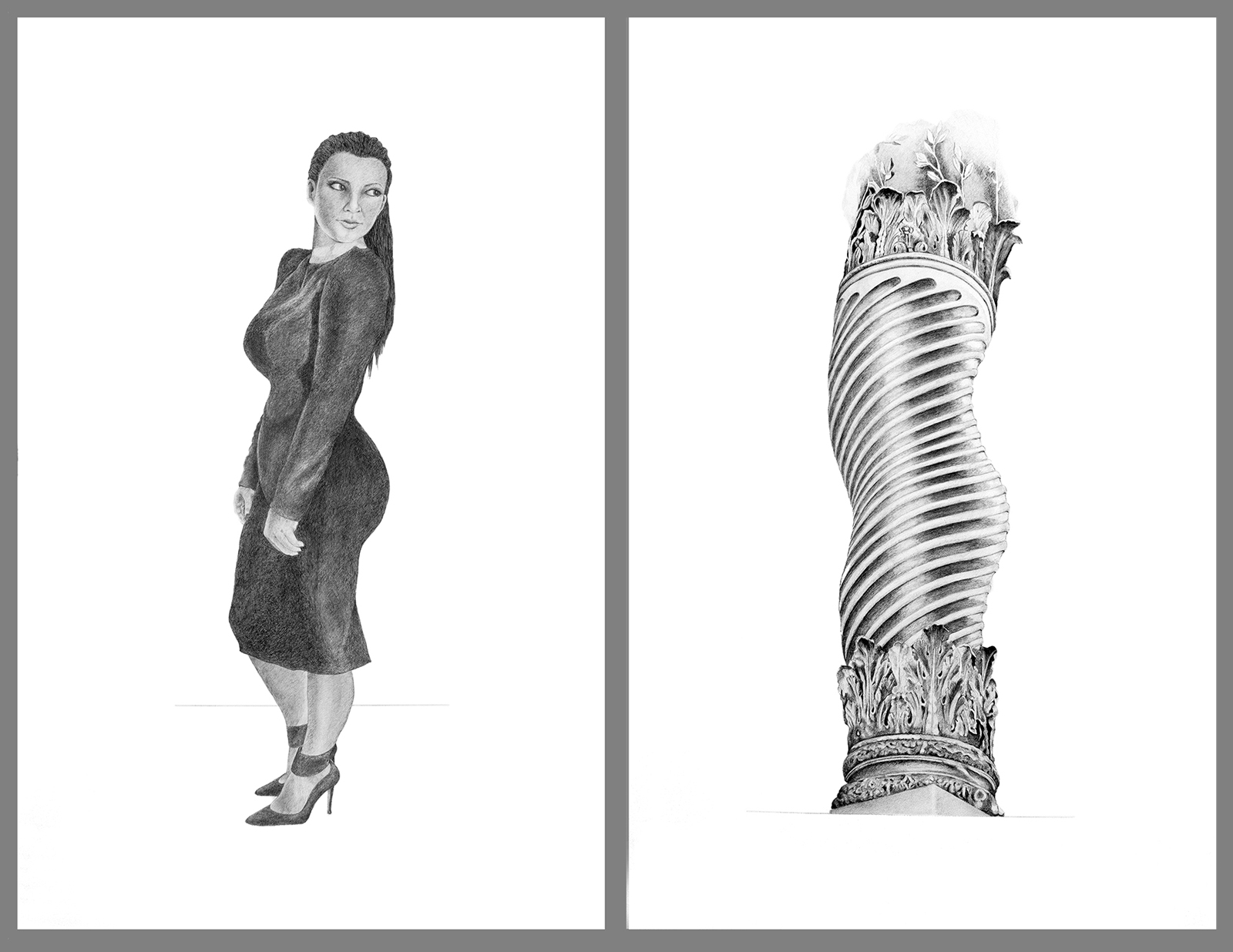 In Kardashian/Bernini I pair Kim Kardashian’s Barbie-like physical proportions with one of Gian Lorenzo Bernini’s Solomonic columns at St. Peter’s Basilica.