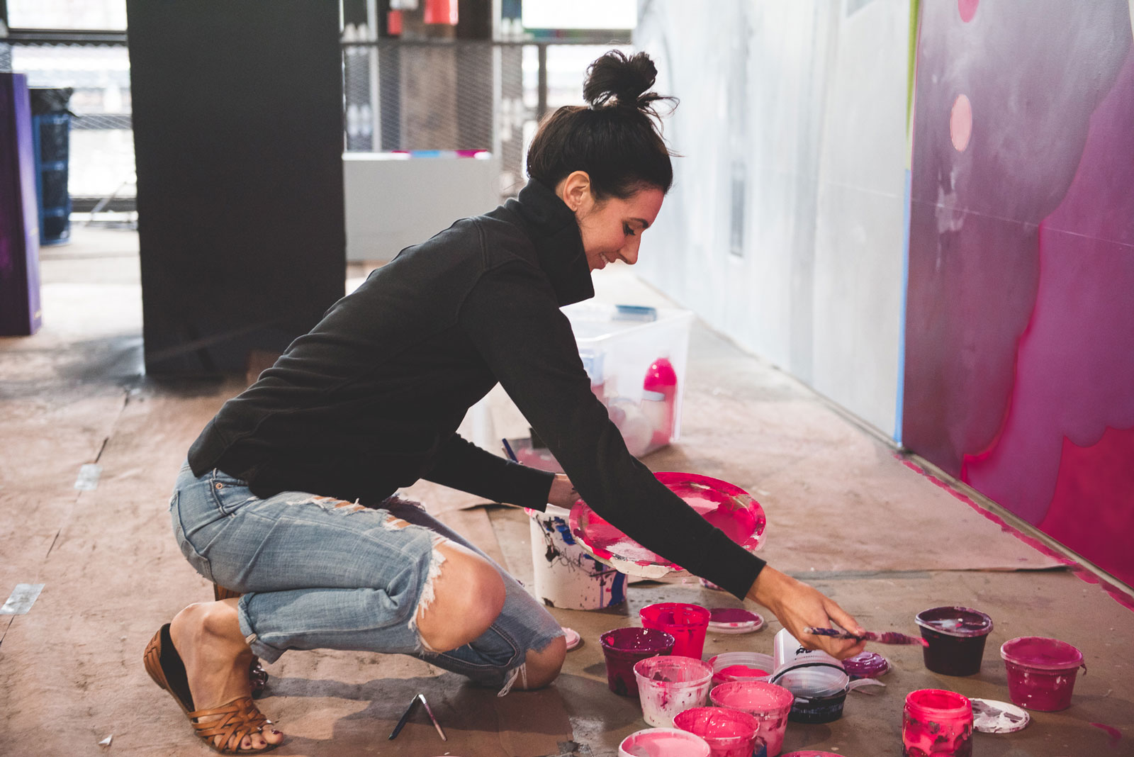 I’m a local artist and public muralist. I’m interested in how visually altering a space with public art affects the surrounding environment. My work is a collaged, fabricated dreamscape of paint, mysterious beauty, and contemporary iconography. I regularly use negative space, juxtaposing methods and visuals to help tell a story.