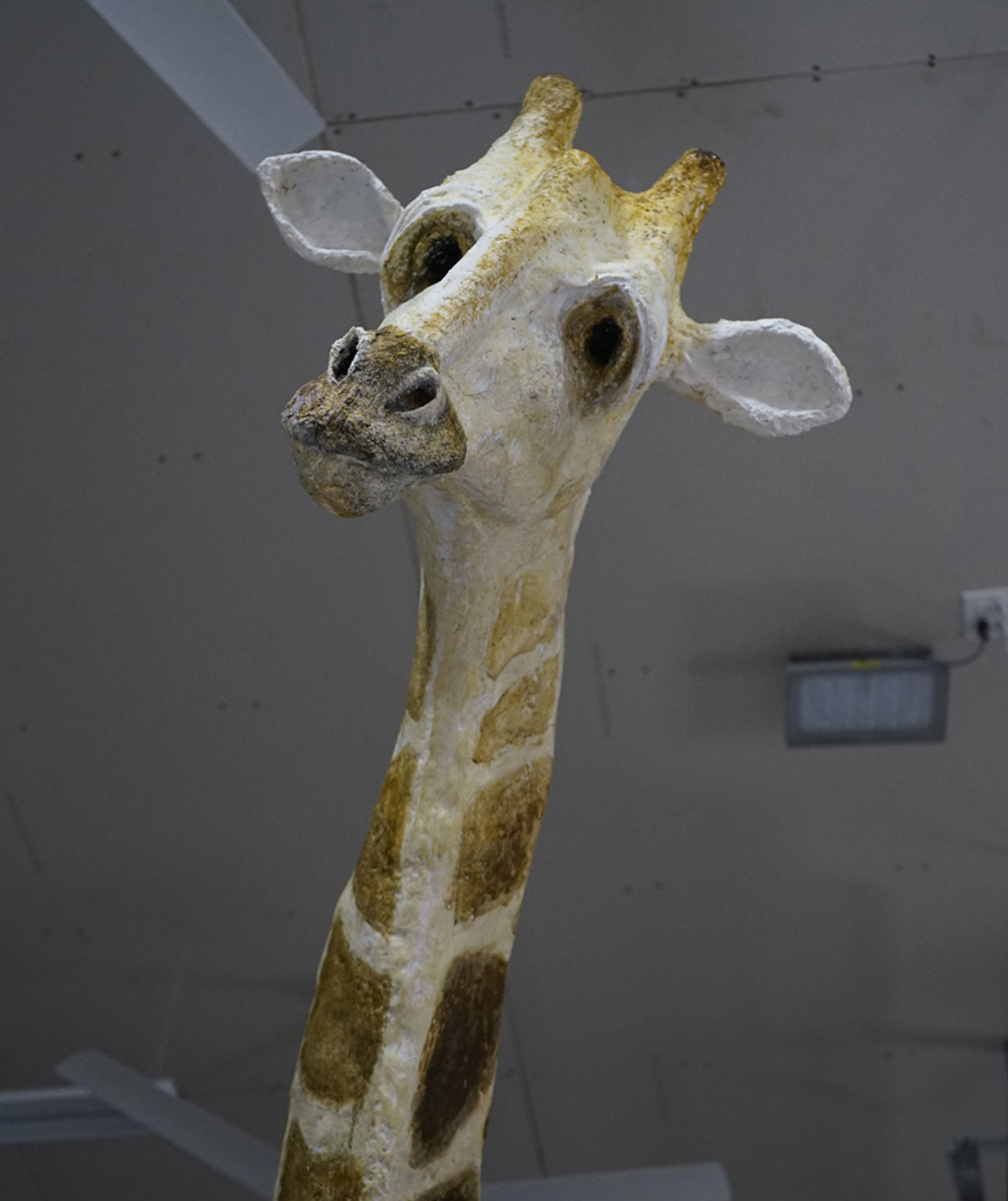 I have just finished creating a 12-foot giraffe cast from prisoners’ letters (“A dream is where we’ll meet”). This piece is dedicated to prisoners living in solitary confinement, particularly those who are also living with mental health issues. Of course, living in solitary confinement creates such issues. The prisoner Clarence has been writing to me for years; sometimes daily, sometimes weekly. In one letter, Clarence wrote these lines – call it a poem – inspiring me to create this giraffe: