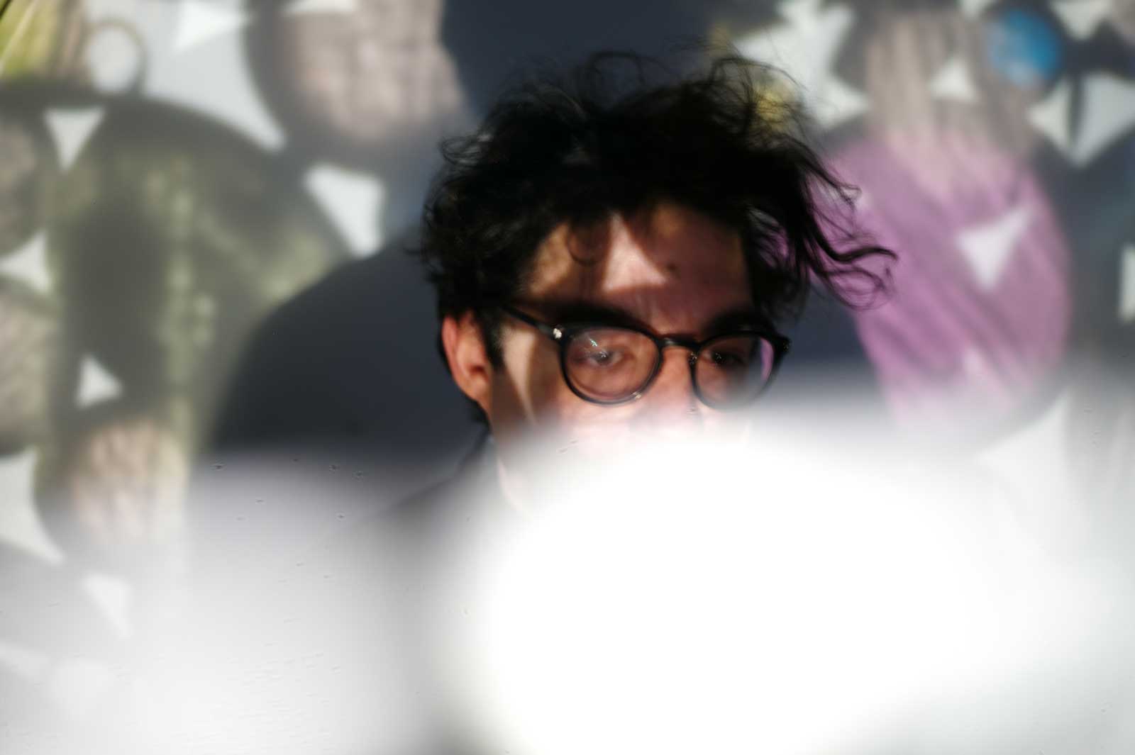 Justin Tyner in the reflection of stained glass. Courtesy Justin Tyner.