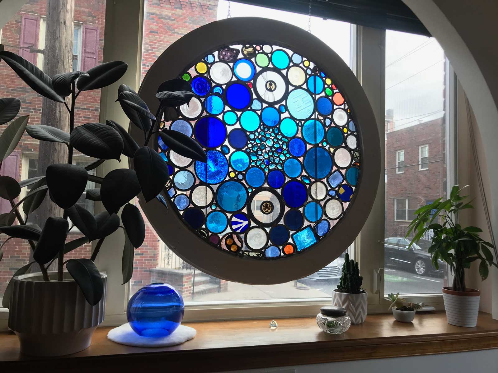 I learned the ancient craft of stained glass out of art school and have been actively practicing it for twenty years. I am finding new ways to experiment with the medium by taking it out of context. Putting it up as street art and exhibiting my latest works in major galleries like the Philly Magic Gardens. My exhibition Light As Memory: Recollections Through Stained Glass, was up there last year from July through September. Simultaneously in September I was awarded an international artist in residence in France at the Chateau Orquveax. It was pure magic there. I was invited to speak at the Stained glass Association of America’s annual conference in June, until it was cancelled. Experimenting with the possibilities of stained glass is my priority. The Stained Glass Photography Project is my latest endeavor. Please contact me via, email jtandt@gmail or reach out on Instagram @jtandt