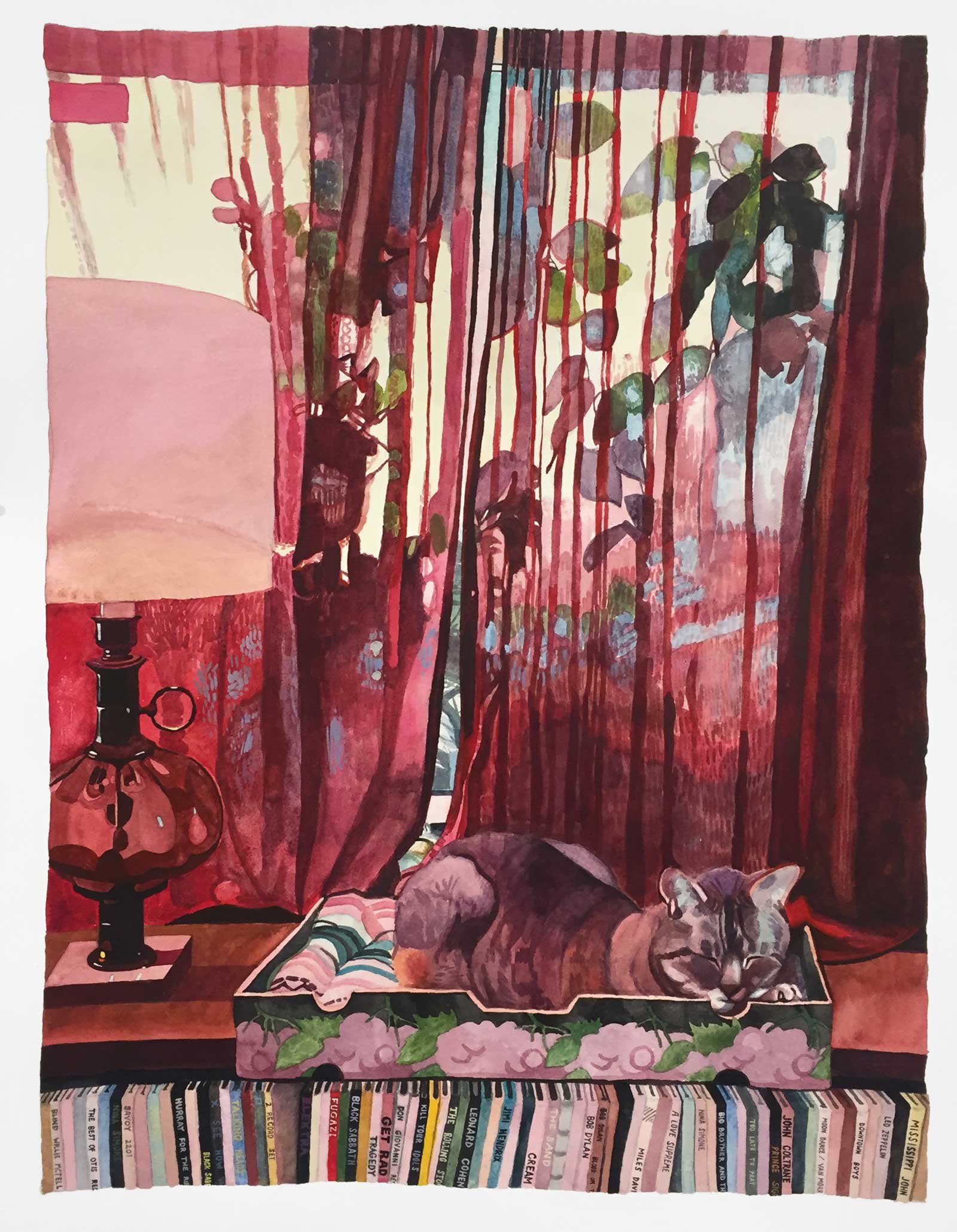 My current body of work explores spaces in the city of Philadelphia through the translation of photographic snapshots into saturated watercolors and dense pencil drawings. In these images people are often absent, but their presence is felt. These are spaces created by humans and their imprint surfaces in the idiosyncrasies and eccentricities of these urban spaces. Many of the images show the city at night. In the absence of people, lights become a sort of apparition, at once both comforting and vaguely unsettling. Often, these lights in the dim landscape appear as a beacon, the message at times unclear.