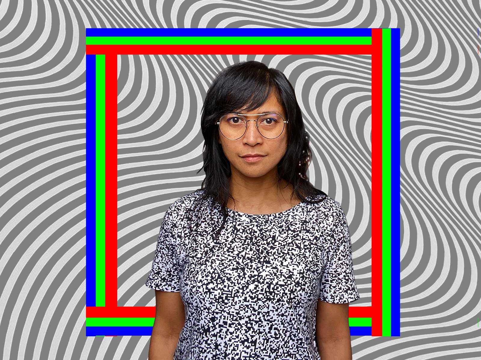 And she also talked about the medium a lot. So I always thought, think about like the medium itself in questioning what the, what are the limitations of the medium? So I was thinking about how digital art is a medium in itself and how that is always in front of us, right? So like, so I think that’s where the red, green and blue came from for me. I pick those colors because those are the primary colors in digital, and that’s how we get our information most of the time, through screens. And then I wanted to turn it back to analog. So, yeah. So there’s that. And then part of the color theory study is Joseph Albers. And there was one part where he said in his book color changes depending on what color you put next to it. Right? So the relativity of color depends on the relationship it has with other things around it.