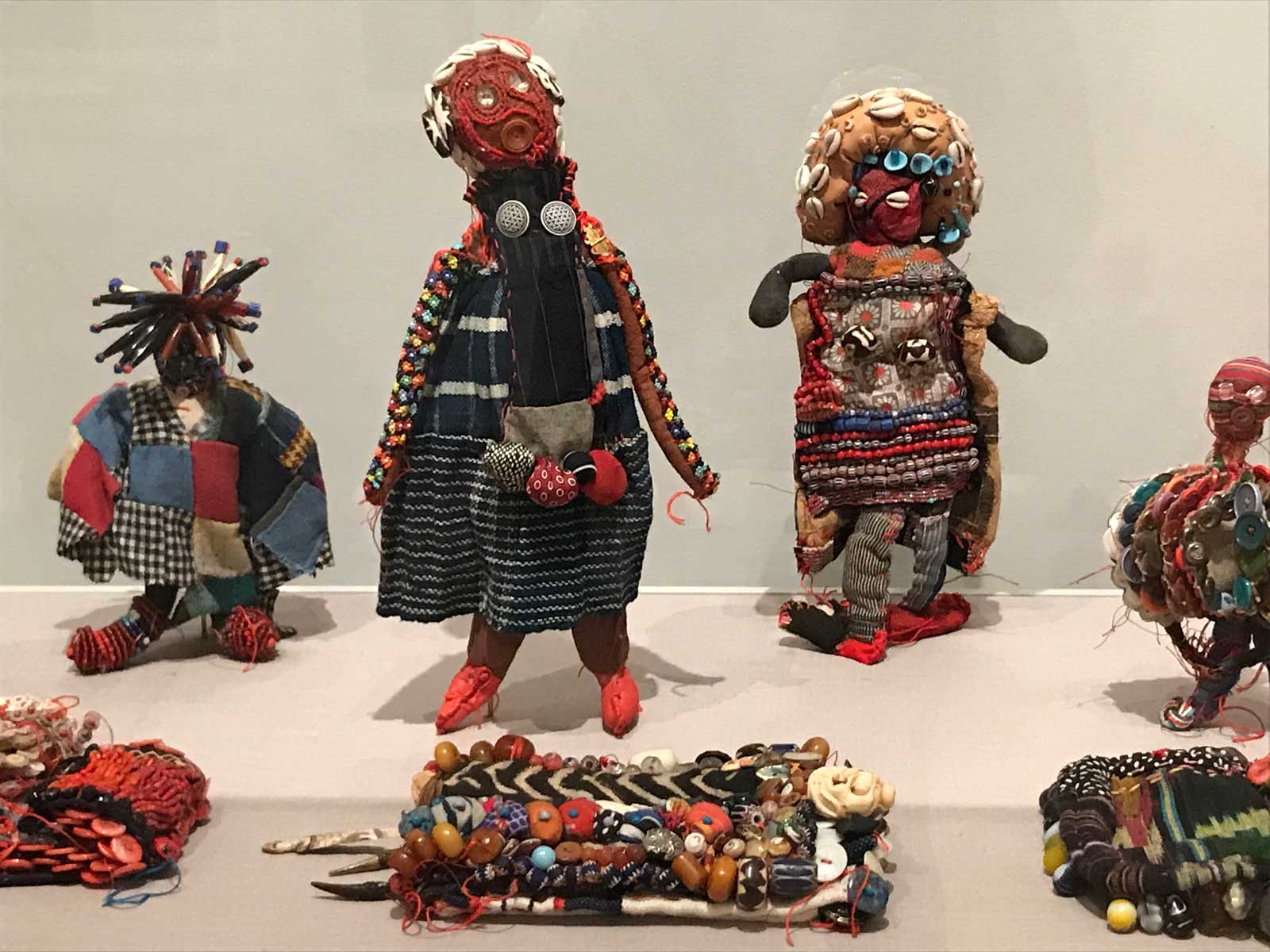 I truly became a kid in a candy store wandering along the incredibly whimsical Raggin’ On exhibition at the Columbus Museum of Art, which celebrates MacArthur winning Aminah Brenda Lynn Robinson (1940-2015), one of the most important artists to hail from Columbus, Ohio. This special retrospective brings together works from Robinson’s childhood to adulthood, highlighting all the in-betweens of a multidisciplinary creative master of drawing, painting, printmaking, sculpture, doll making/puppetry, quilting, and writing.