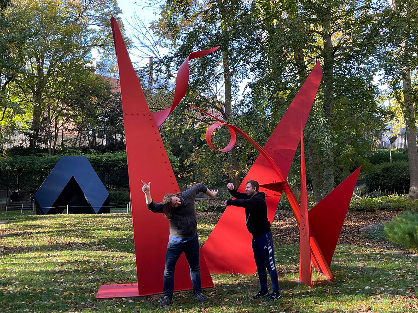 Washing the “pure individual creations” in the garden further permits new artforms, enjoyed only by the workers who wash them. Sonic flourishes elicited when blasting them with a hose remind me that large bronzes are actually hollow, though seemingly solid. The bigger the work, the deeper the sound. Some pieces emit a pleasing musicality as they’re being sprayed. Seventh Decade Forest (1971-1976) by Louise Nevelson and Noh Musicians (1958/1974) by Isamu Noguchi register a surprising range of tones as water slaps against their metallic surfaces, like rain playing jazz music.