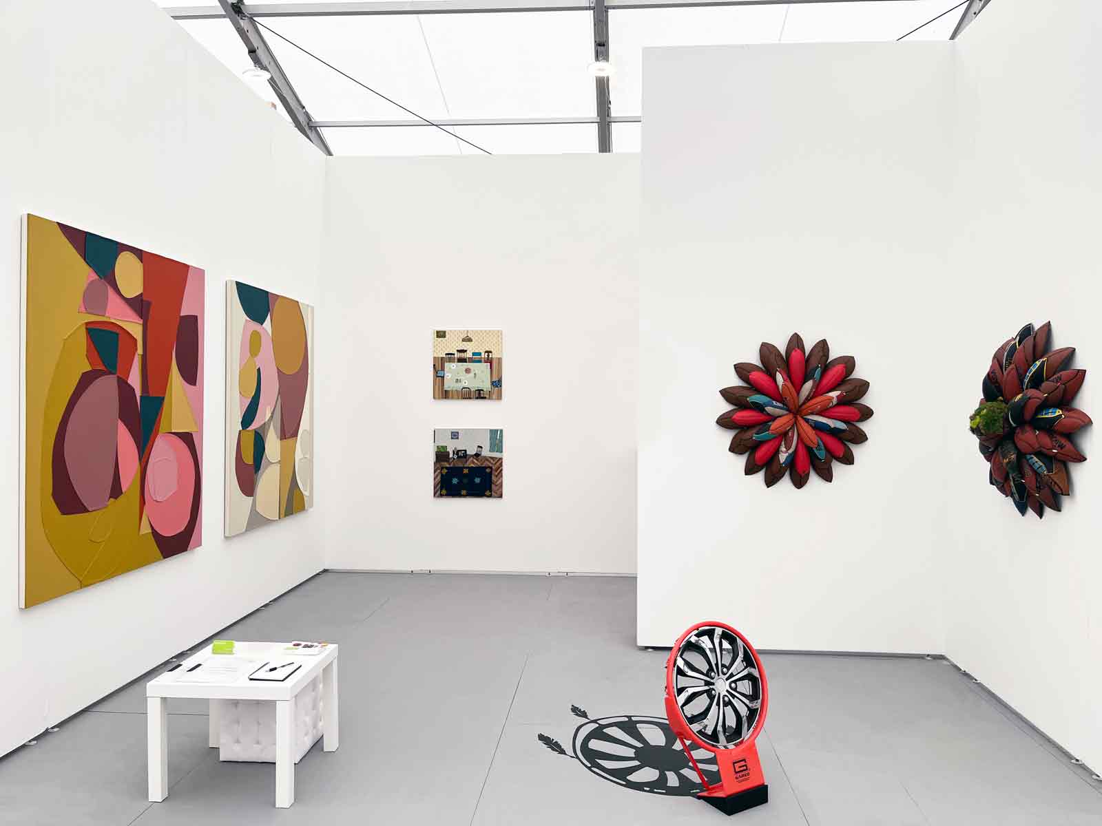 I usually do Untitled Art, in Miami, in the winter, and Future Fair in spring: two a year. I was accepted in a Chicago fair this year but ended up not going since I wanted to attend my son’s graduation. To apply to a fair, you submit a proposal for review, and if accepted have only four to five months to plan. And it’s often the case that if you are accepted one year, they don’t want you the next. Art fairs really serve my artists, and sometimes I only sell enough to cover my expenses, but they give credibility to the roster I am showing. Curators are like kids in the candy store. And other gallerists that might help my artists’ careers are shopping fresh talent. Most importantly, I get to meet our online collectors at fairs.
