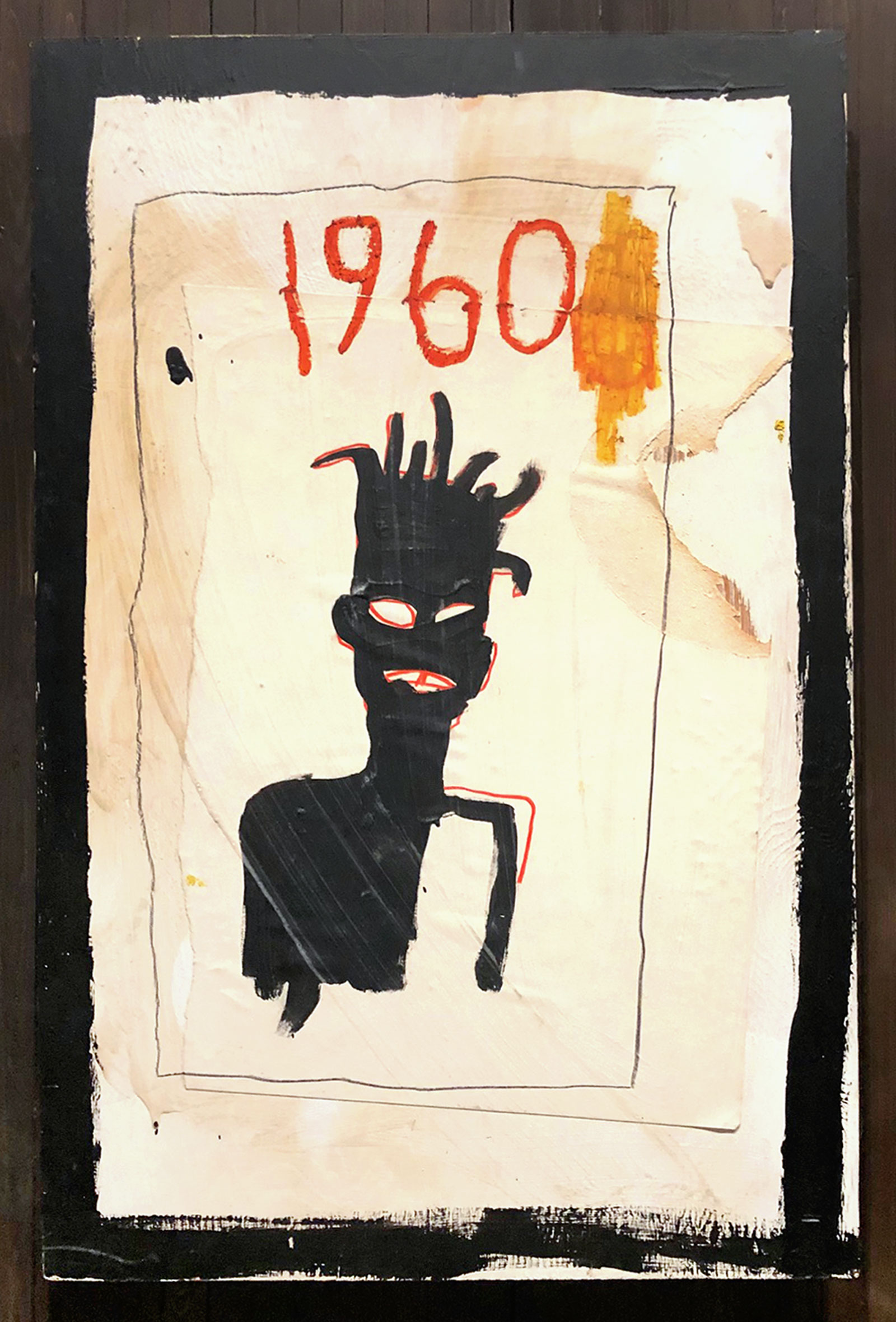 After seeing Now’s The Time at the Art Gallery of Ontario in Toronto and Basquiat: The Unknown Notebooks at the Brooklyn Museum, King Pleasure, my third Jean-Michel Basquiat exhibition experience, offers further insight into the brilliant, trilingual artist’s short life and career. With over two hundred displayed artworks and objects, curated by his two sisters Lisane Basquiat and Jeanine Heriveaux, King Pleasure takes place inside of the spacious Starrett-Lehigh Building in Chelsea. Sir David Adjaye OBE— the prominent designer behind the Smithsonian’s National African American Museum of History and Culture— beautifully recreates the Basquiat family home, holding up a three-dimensional scrapbook to Jean-Michel Basquiat’s biggest fans. Instead of the typical white gallery walls, the rustic wood makes the exhibition appear more homey and inviting— less institutional. Basquiat’s edgy, sharp persona shines through works that are as attractive and charismatic as the artist himself.