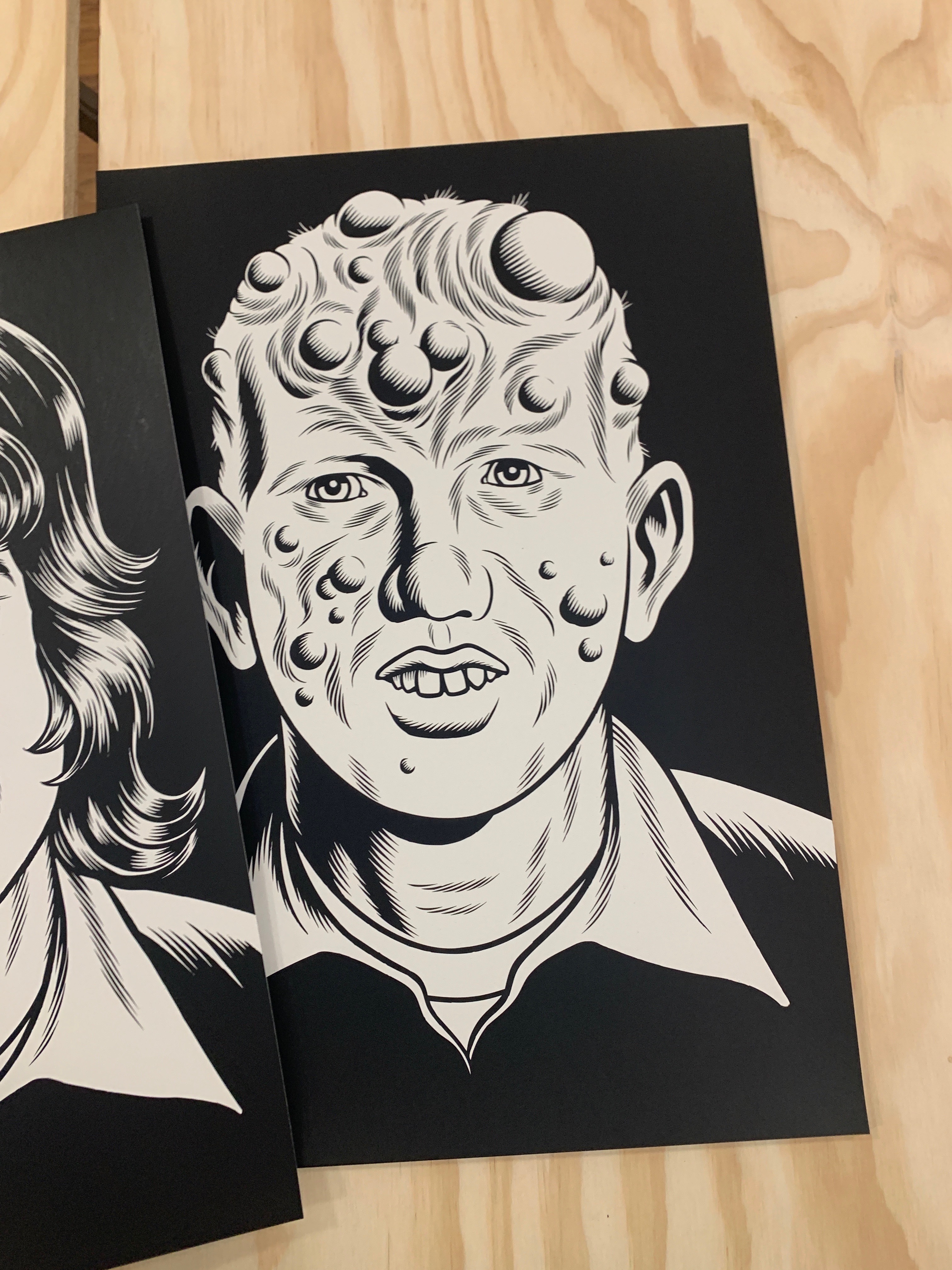 Pretty soon, though, they realized they had found a niche. “We’re filling a hole here,” Dawson said. Local cartoonists started stopping by regularly, and a community cohered around Partners and Son. One of those local cartoonists was Burns. “The first time he came into the shop,” Dawson recalled, “Tom texted me and said, ‘Charles Burns is here.’ And I was like, ‘Just be cool.’”