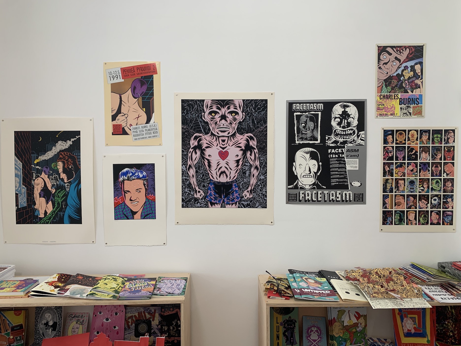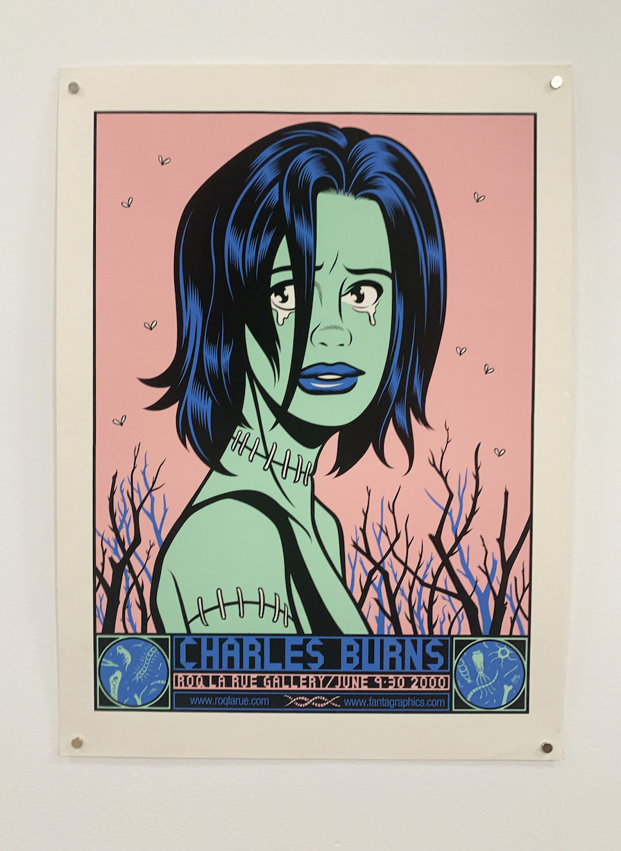 Despite its relative gravity, the exhibition, Charles Burns: Posters and Prints, was born of an offhand remark. One day Burns stopped by Partners and Son to drop off some books and prints for the shop’s donation shelf. “He said something about how he might bring us more here and there because he had so many,” Dawson remembers. “And I just blurted out, ‘Well, if you ever want a show!’”